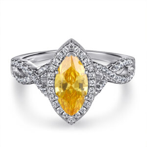 S925 Silver Ring Ladies Luxury Personality Marquise Citrine Zircon Fashion Ring Row Diamond Factory Wholesale