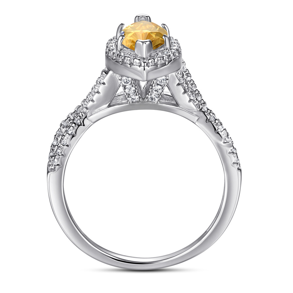S925 Silver Ring Ladies Luxury Personality Marquise Citrine Zircon Fashion Ring Row Diamond Factory Wholesale