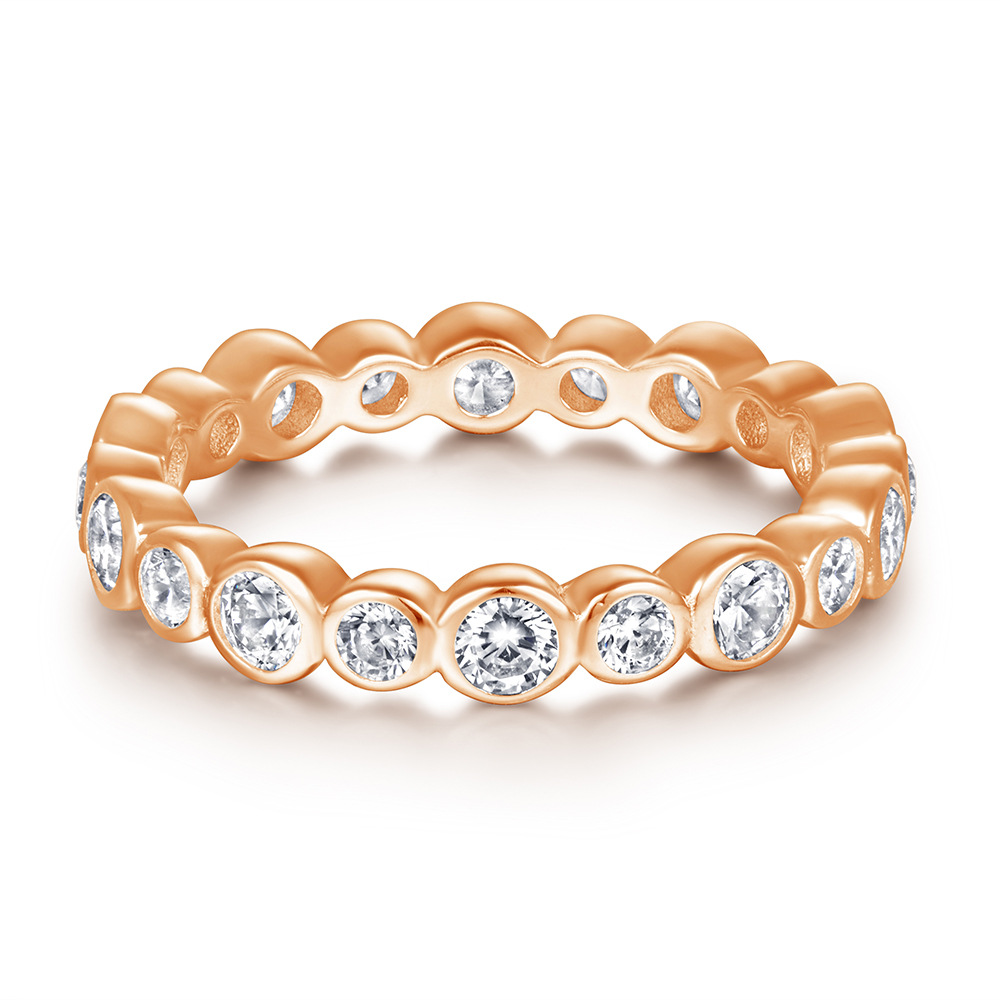 S925 Silver Ring Rose Gold Platinum European and American Fashion Round Full Diamond Star Ring Female Ring Manufacturers Wholesale