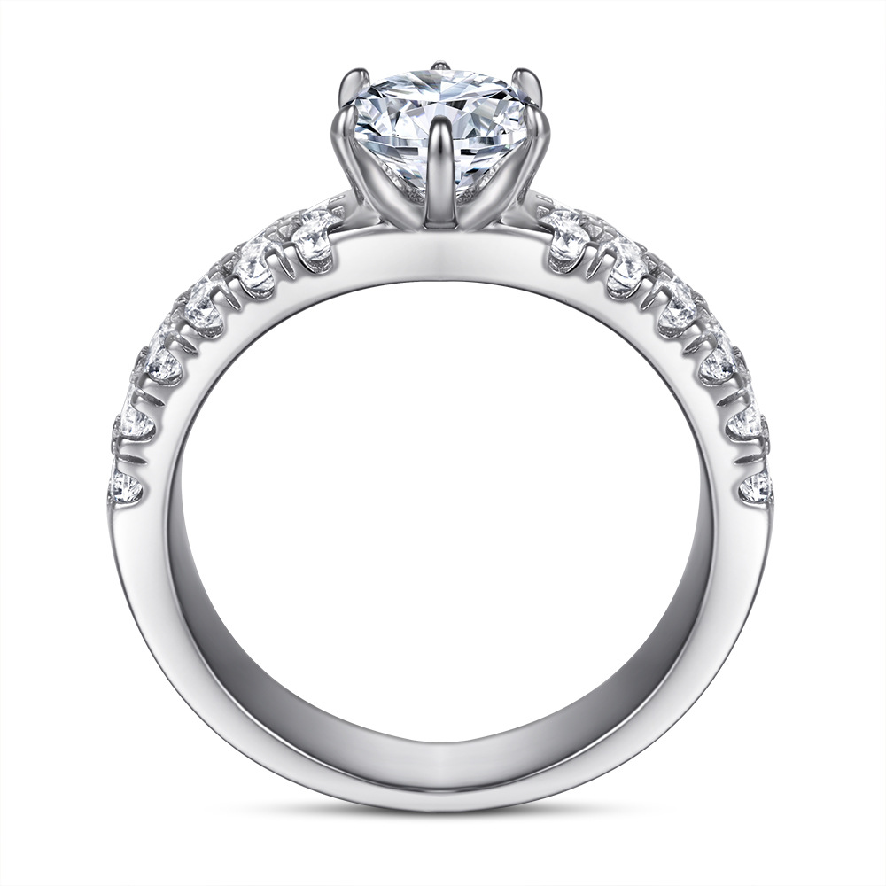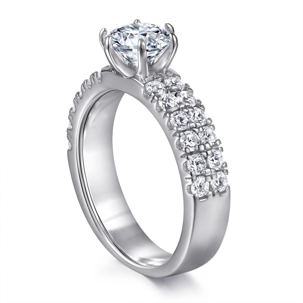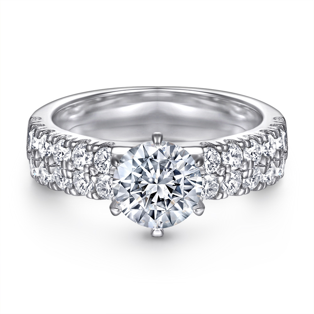 S925 Silver Ring Women’s Fashion Double Row Six Claw One Carat Zircon Sterling Silver Diamond Ring Wedding Ring Manufacturers Wholesale