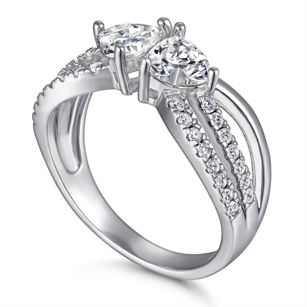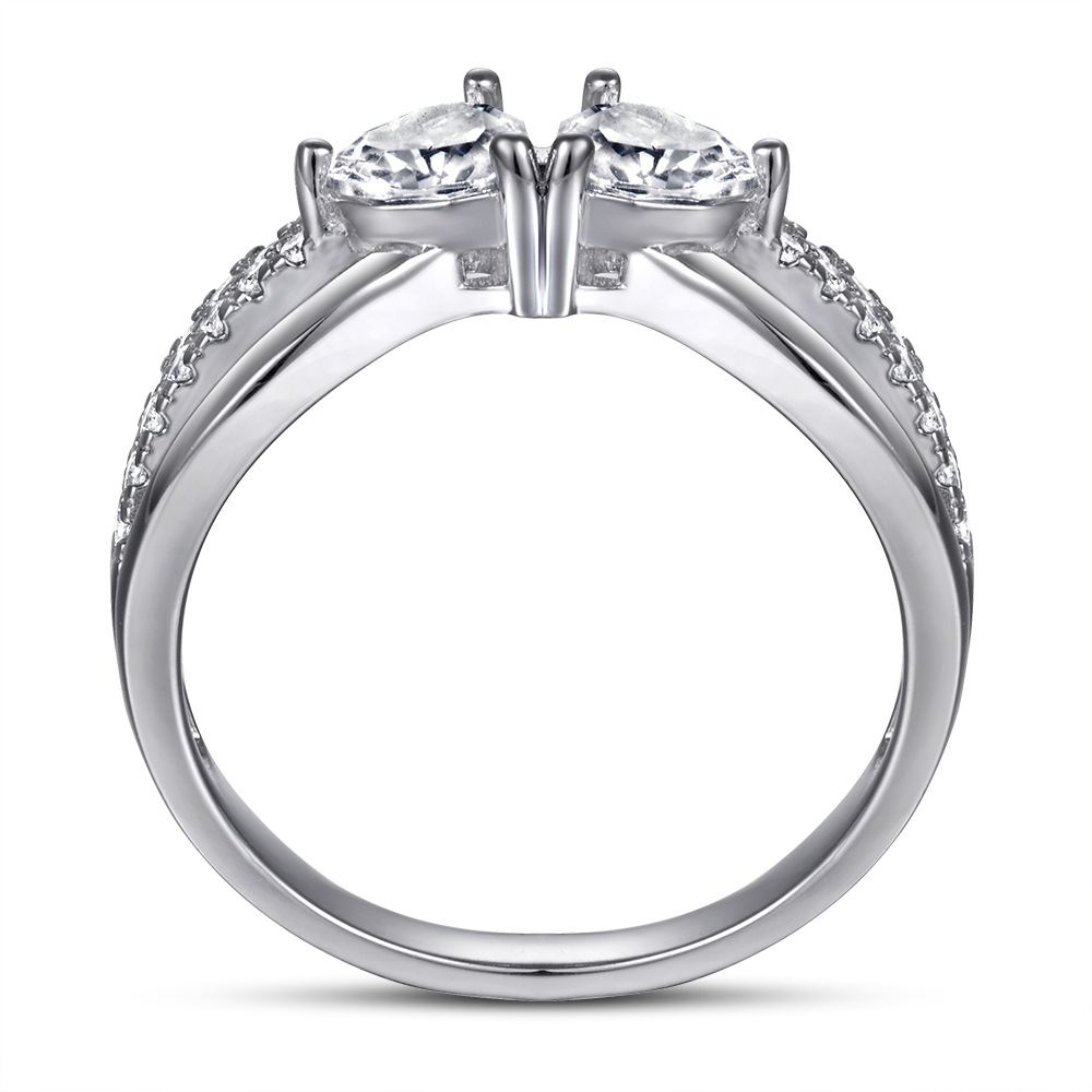 S925 silver ring women’s niche senior diamond ring European and American fashion double heart intertwined love wedding ring manufacturers