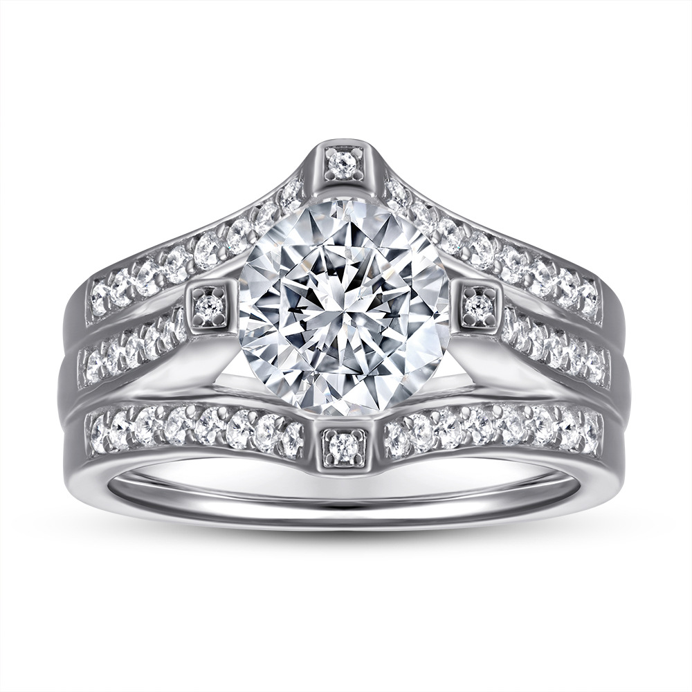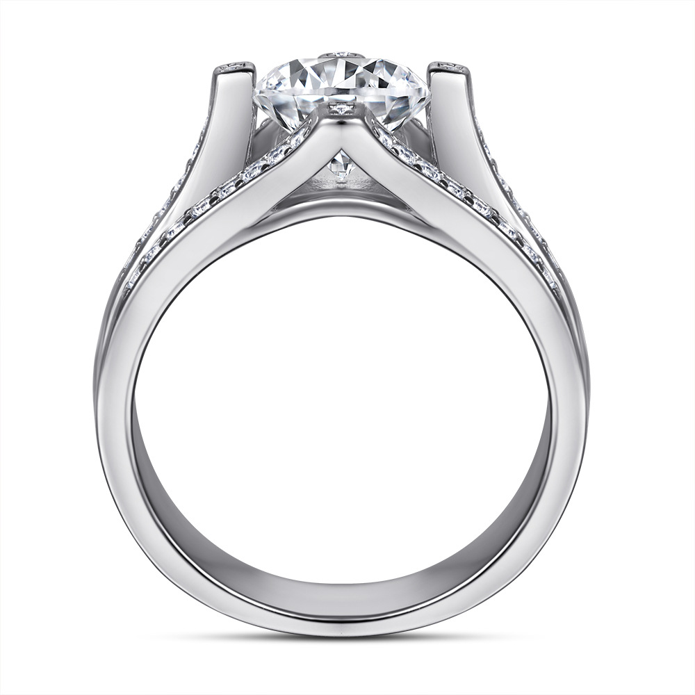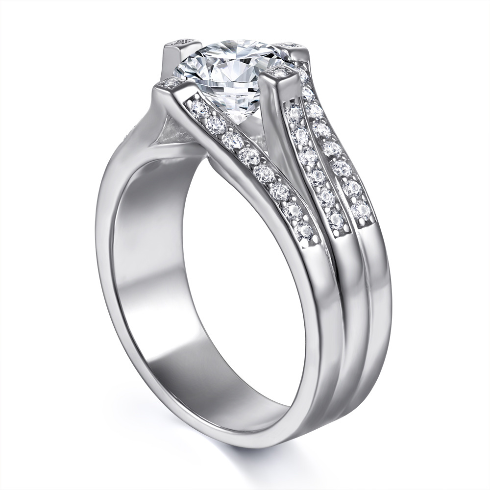 S925 Silver Ring Women’s Row Ring Sterling Silver Four Prongs One Carat Zircon Diamond Ring Fashion Manufacturers Wholesale