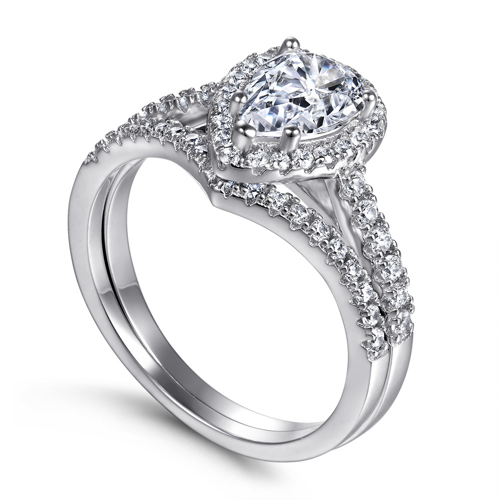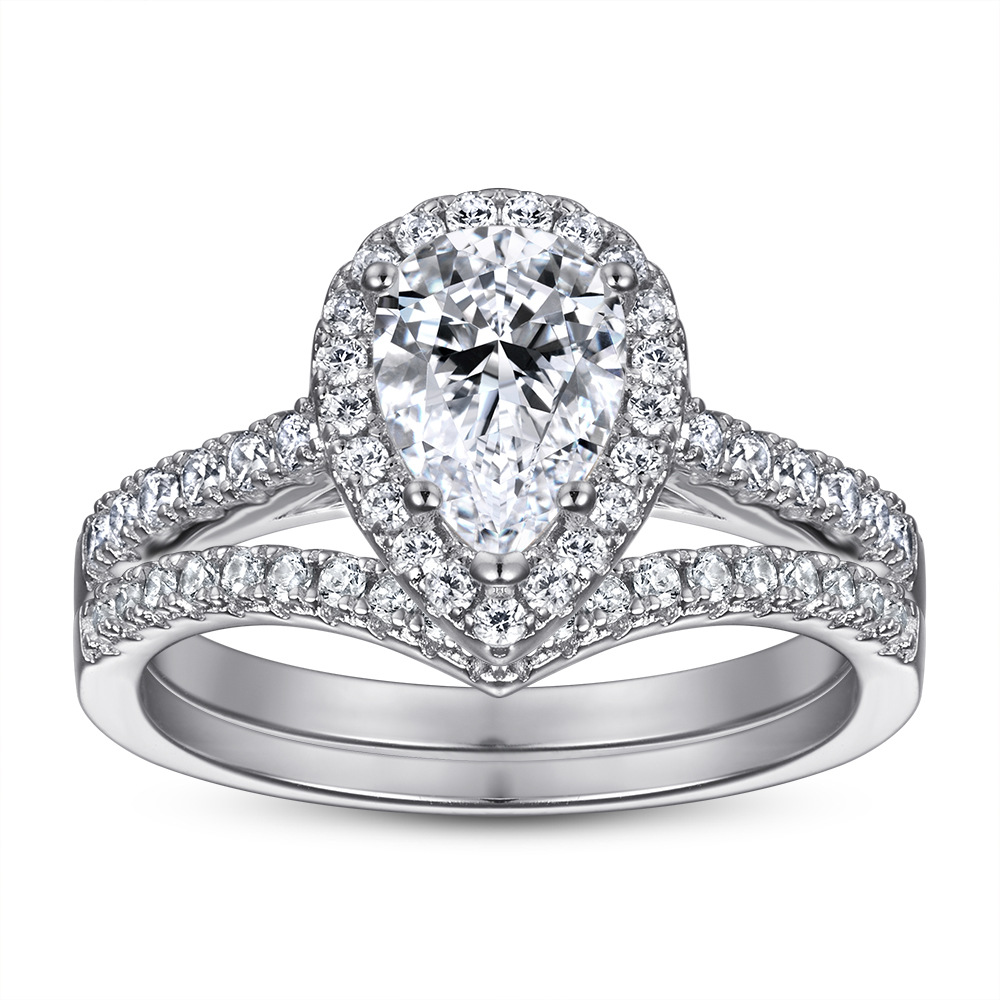 S925 silver rings pear-shaped zircon set rings imitation diamond rings