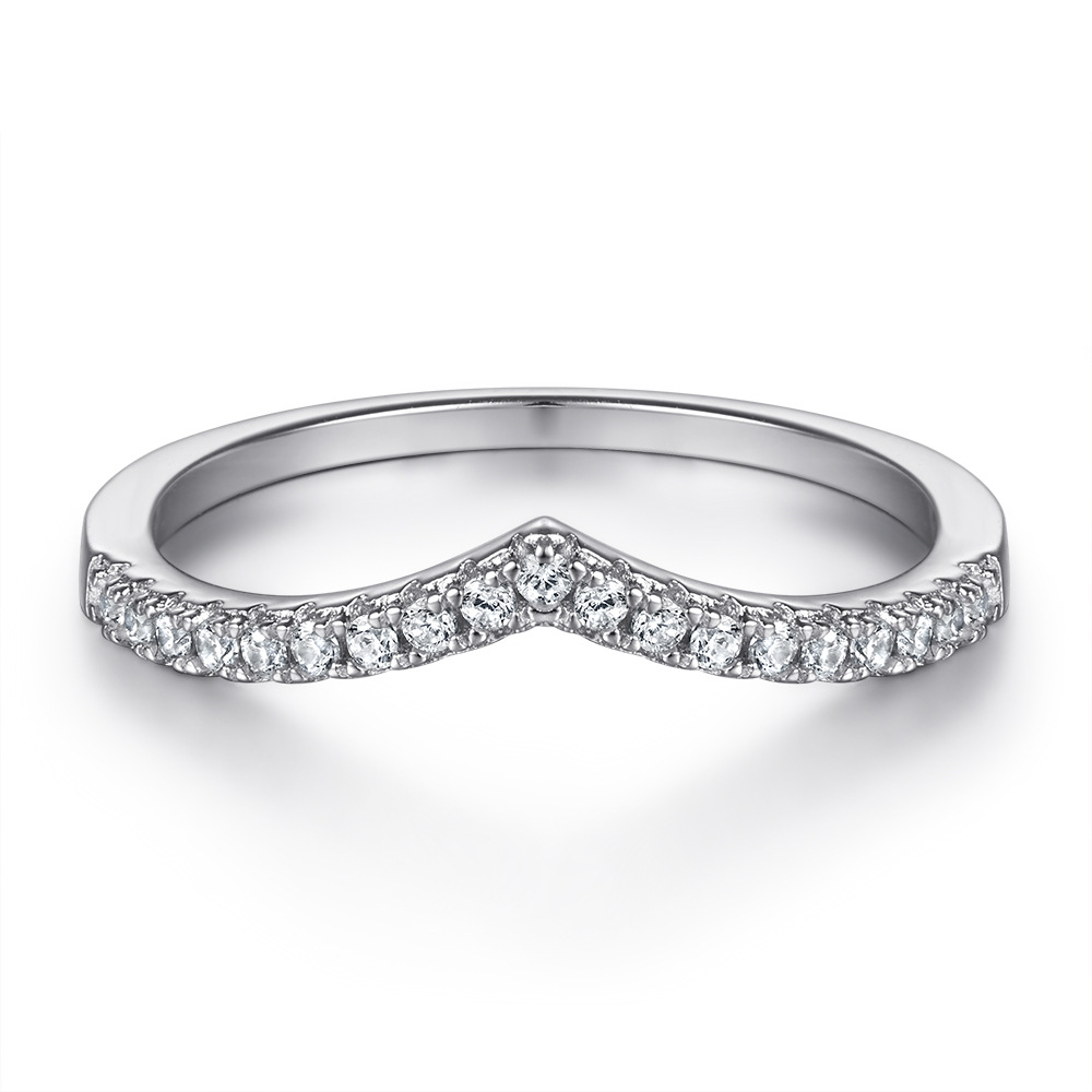 925 sterling silver jewelry set European and American V-shaped crown ring denier-shaped zircon pendant necklace simple earrings