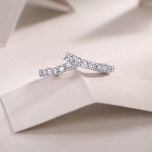925 sterling silver jewelry set European and American V-shaped crown ring denier-shaped zircon pendant necklace simple earrings