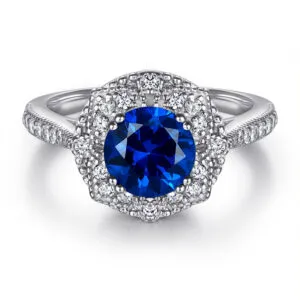 S925 silver sapphire ring blue zircon earrings necklace jewelry set