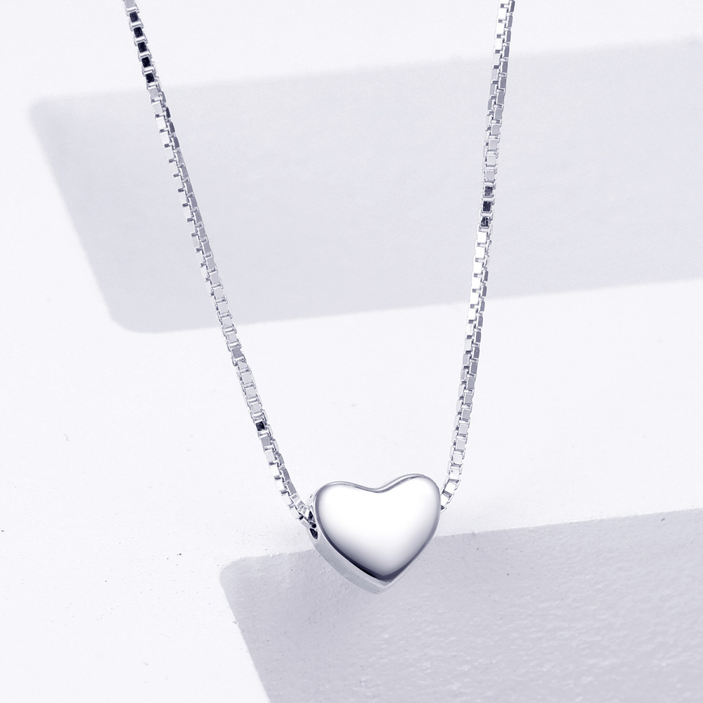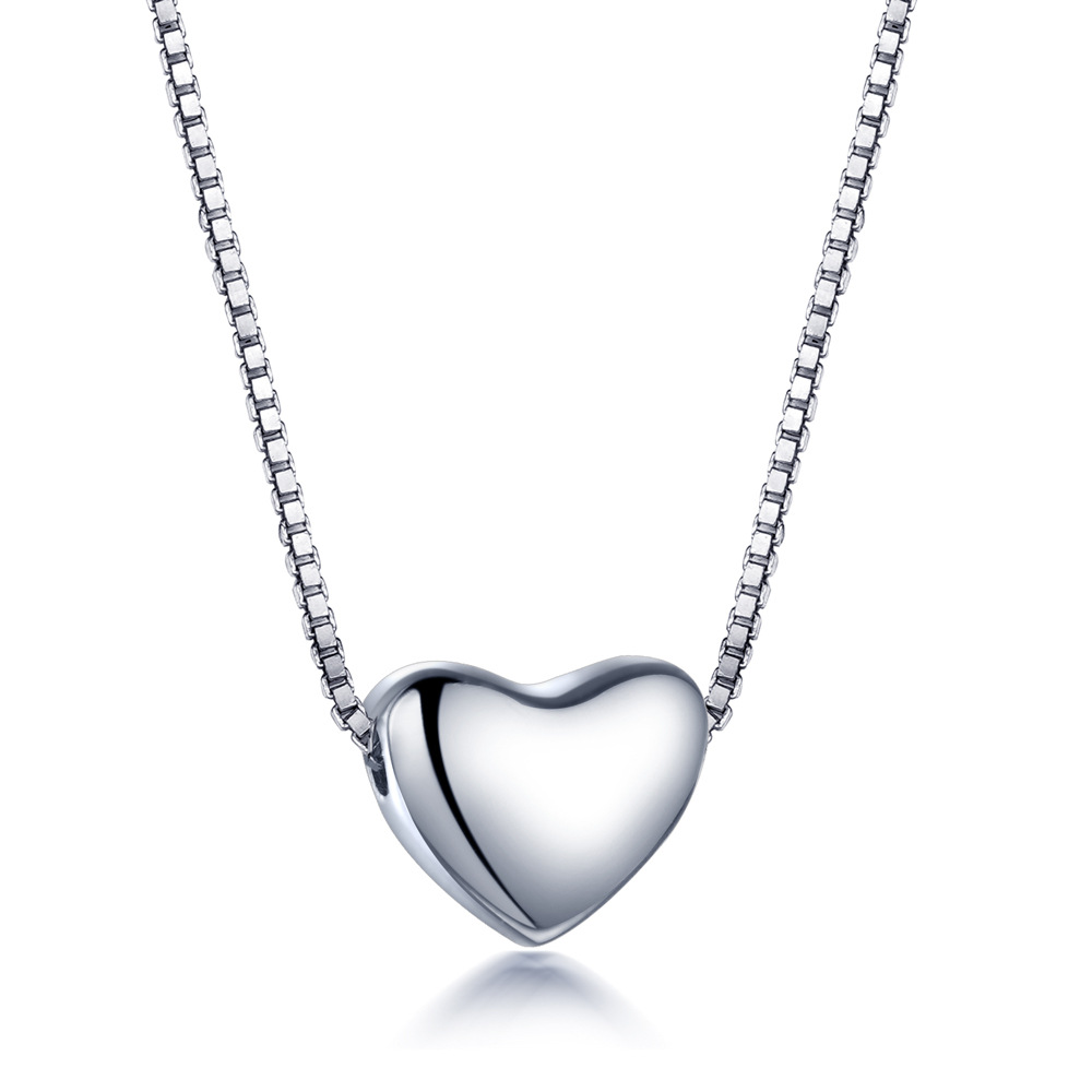 S925 Silver Three-dimensional Heart Necklace Women’s Japanese and Korean Simple Fashion Box Chain Pendant Necklace Accessories Wholesale