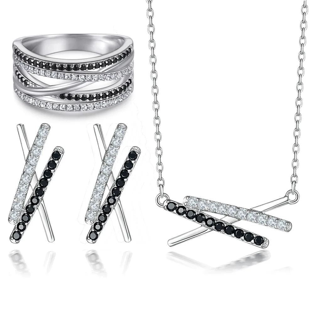 S925 silver X-letter jewelry set color separated zircon irregular ring women’s earrings fashion necklace