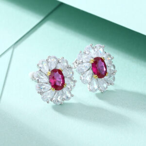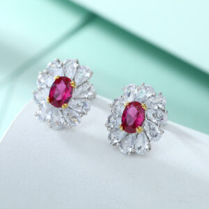 S925 silver zircon flower stud earrings daisy ruby earrings retro earrings