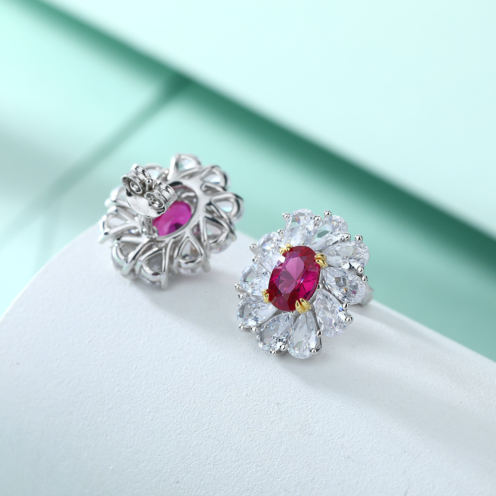 S925 silver zircon flower stud earrings daisy ruby earrings retro earrings