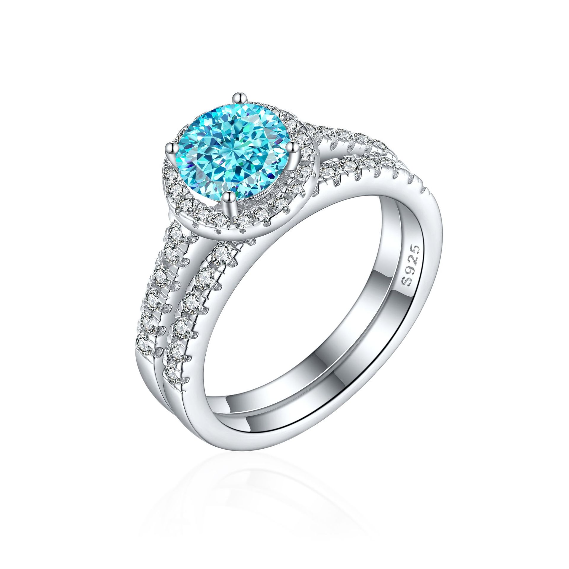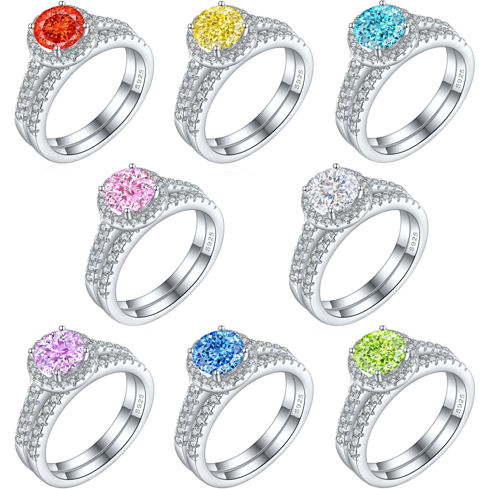 S925 sterling silver 1.2ct flame ice flower cut ring European and American gemstone colored gemstone set ring 7*7 high carbon diamond women’s ring
