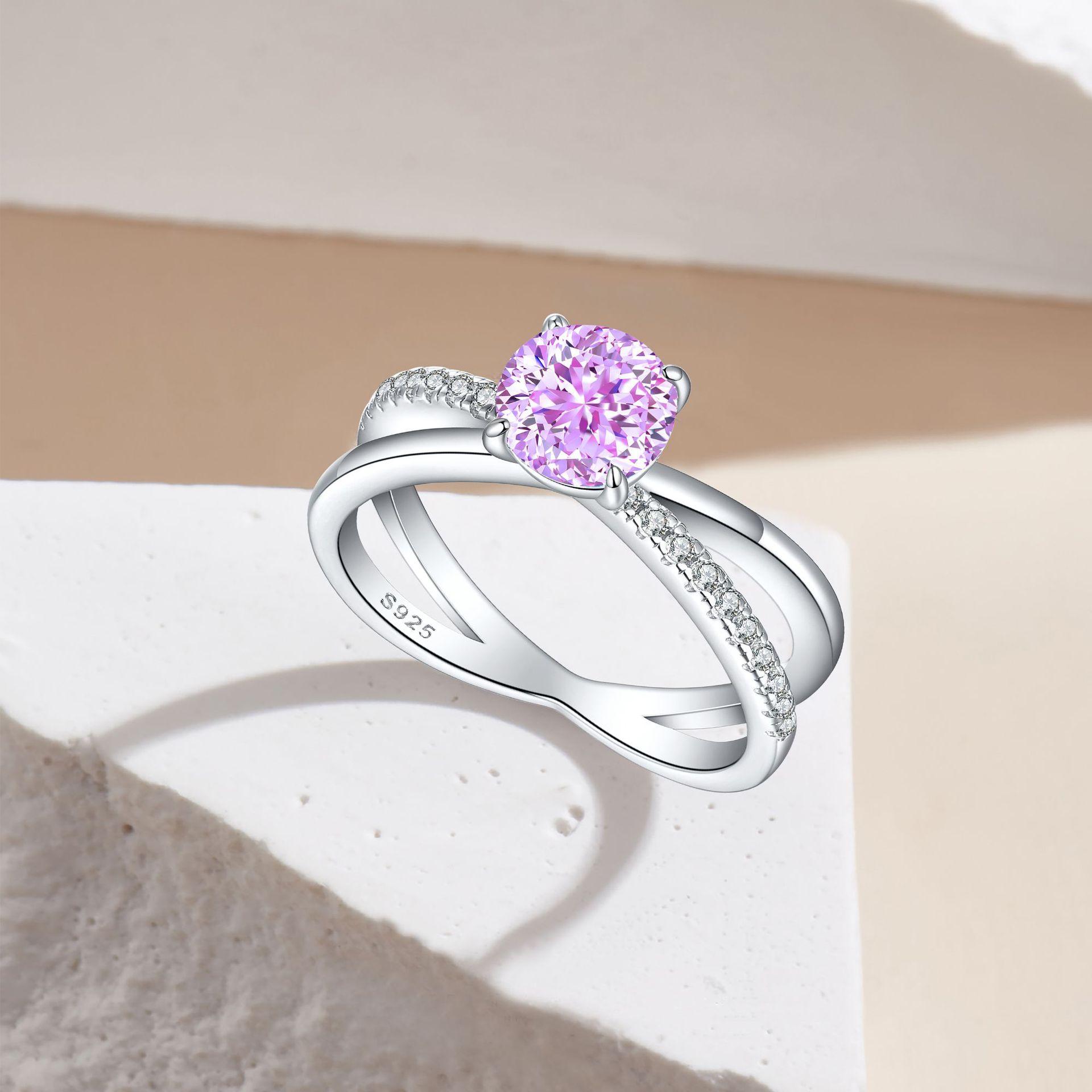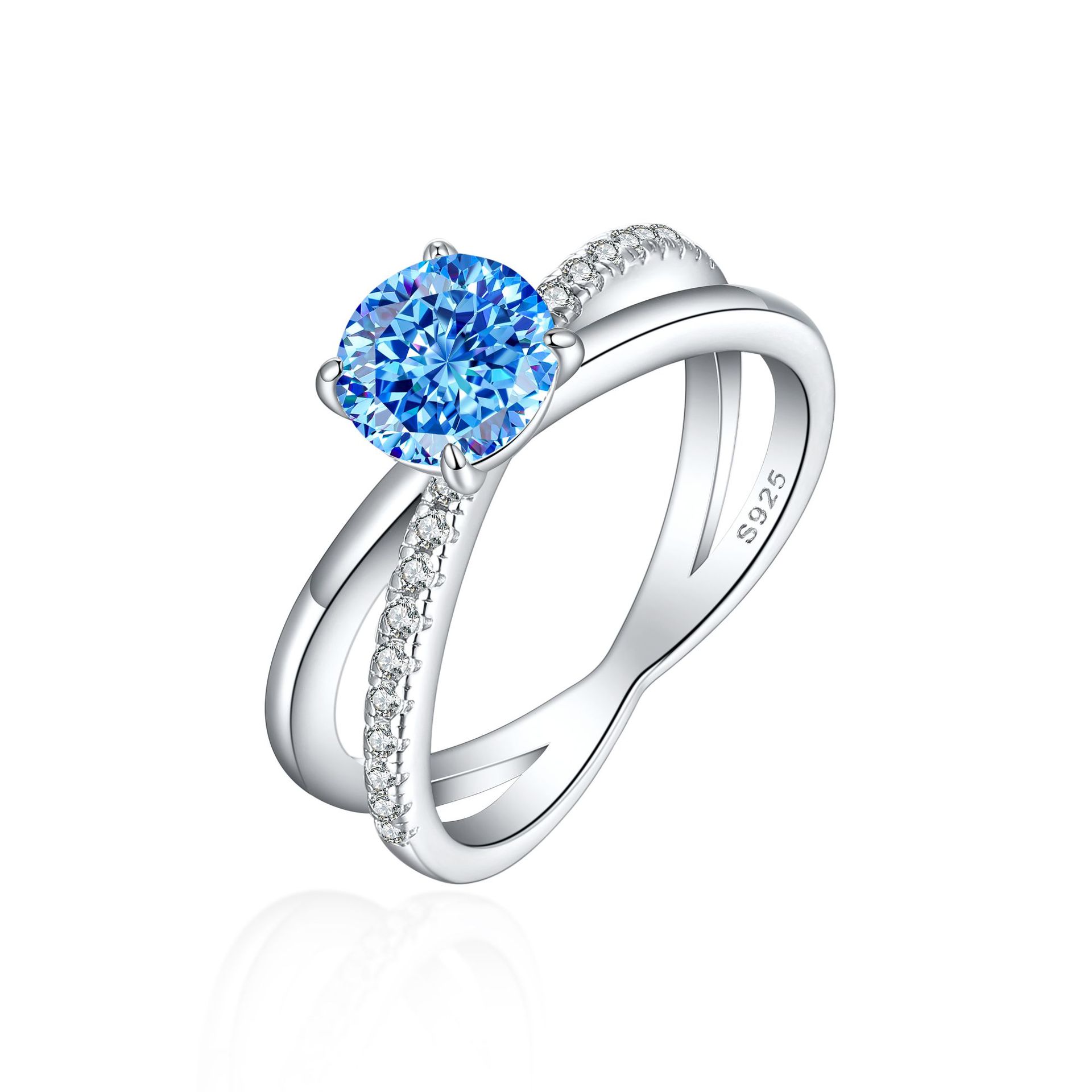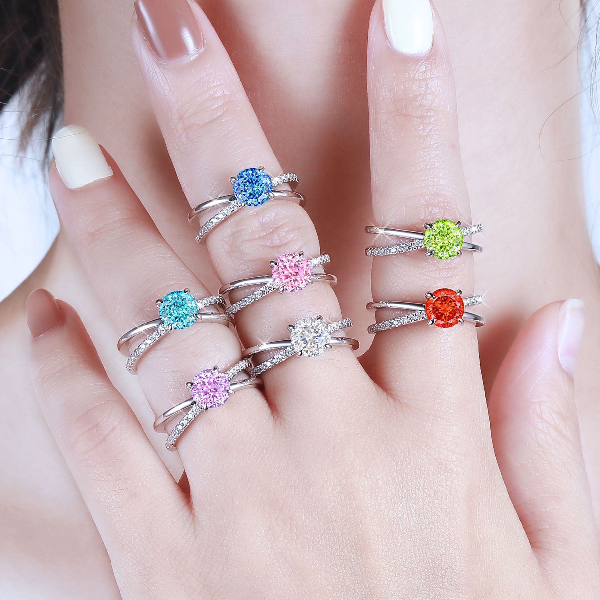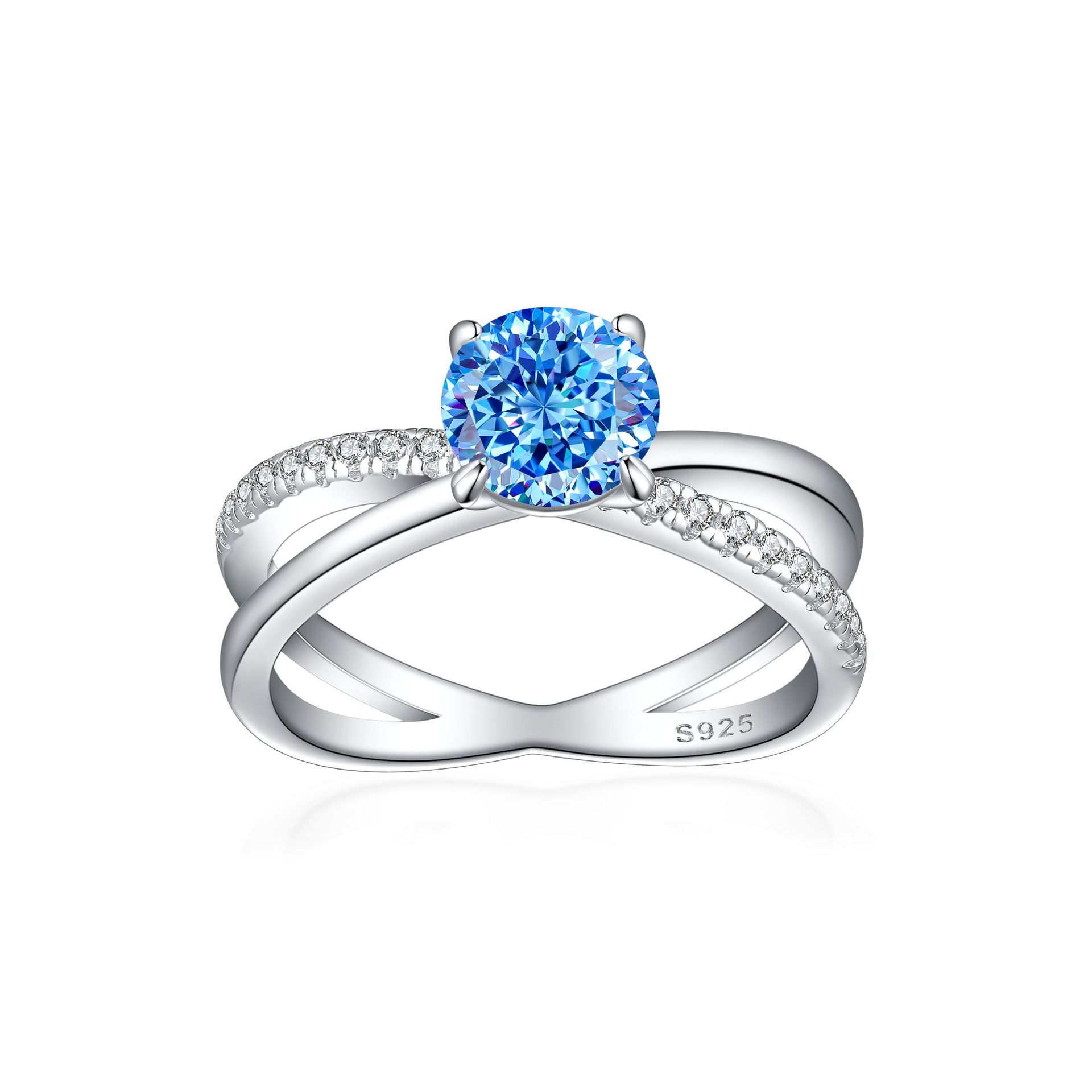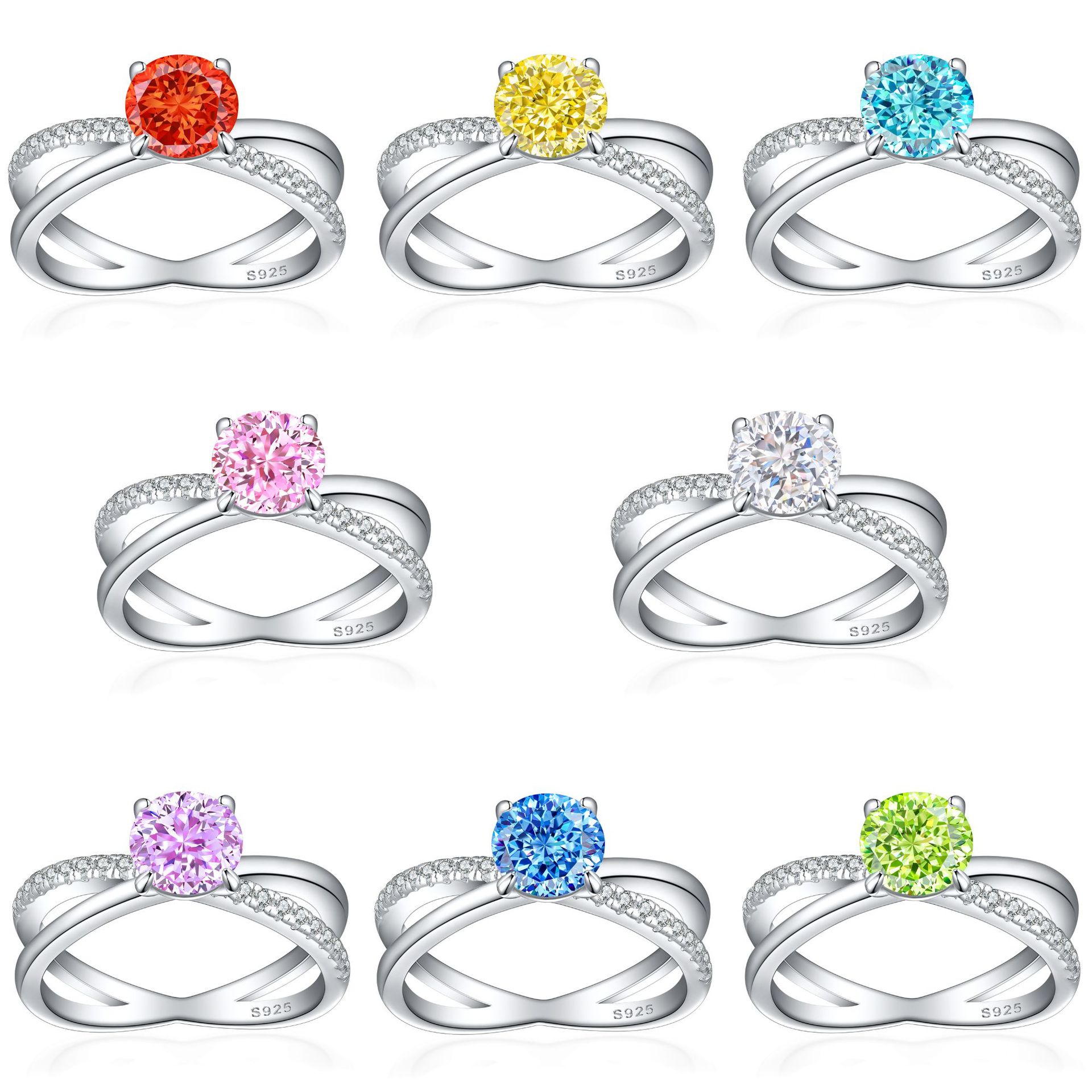 925 sterling silver 1.2ct flame ice flower cut X-shaped ring women’s luxury sense 7*7 colored gemstone high carbon diamond ring European and American style.