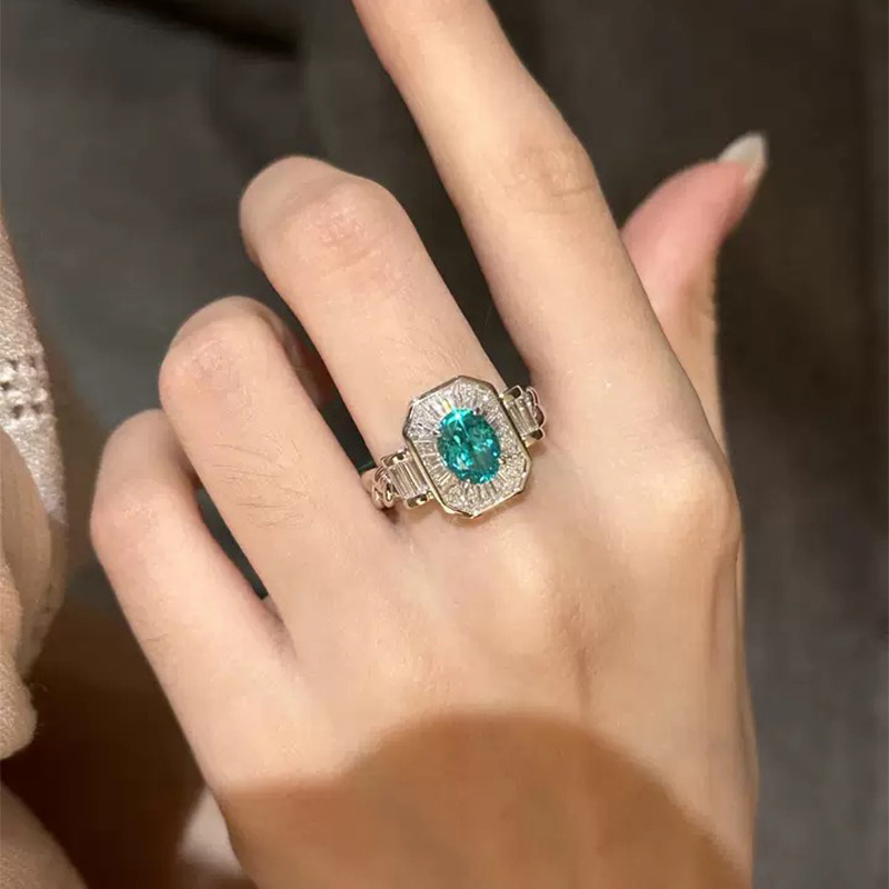 S925 sterling silver 1.5-carat Paraiba pigeon egg ring