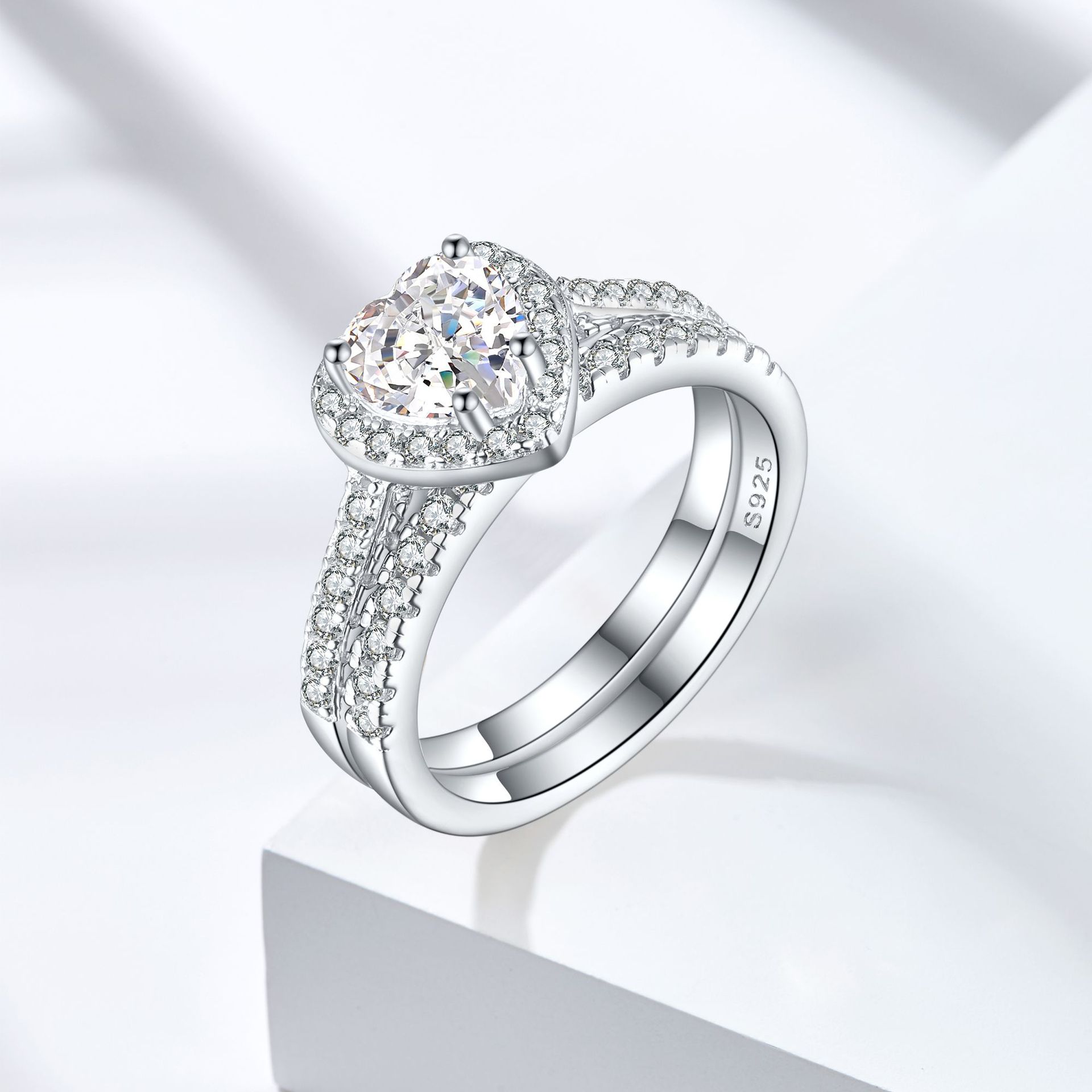S925 Sterling Silver 1ct Flame Ice Flower Cut Heart Combination Ring Premium 7*7 Colored Gemstone High Carbon Diamond Love Ring