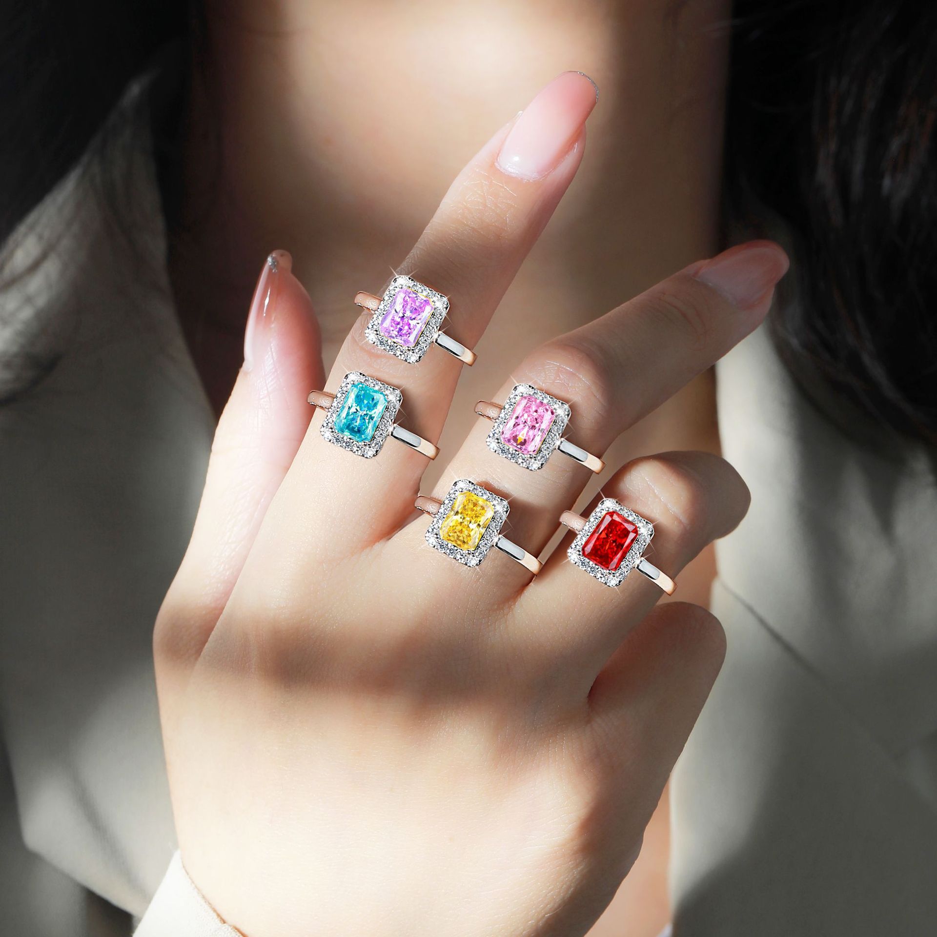 S925 sterling silver 2ct6*8 high carbon diamond ring women’s light luxury luxury sense 8A zircon colored gemstone wedding ring ins style