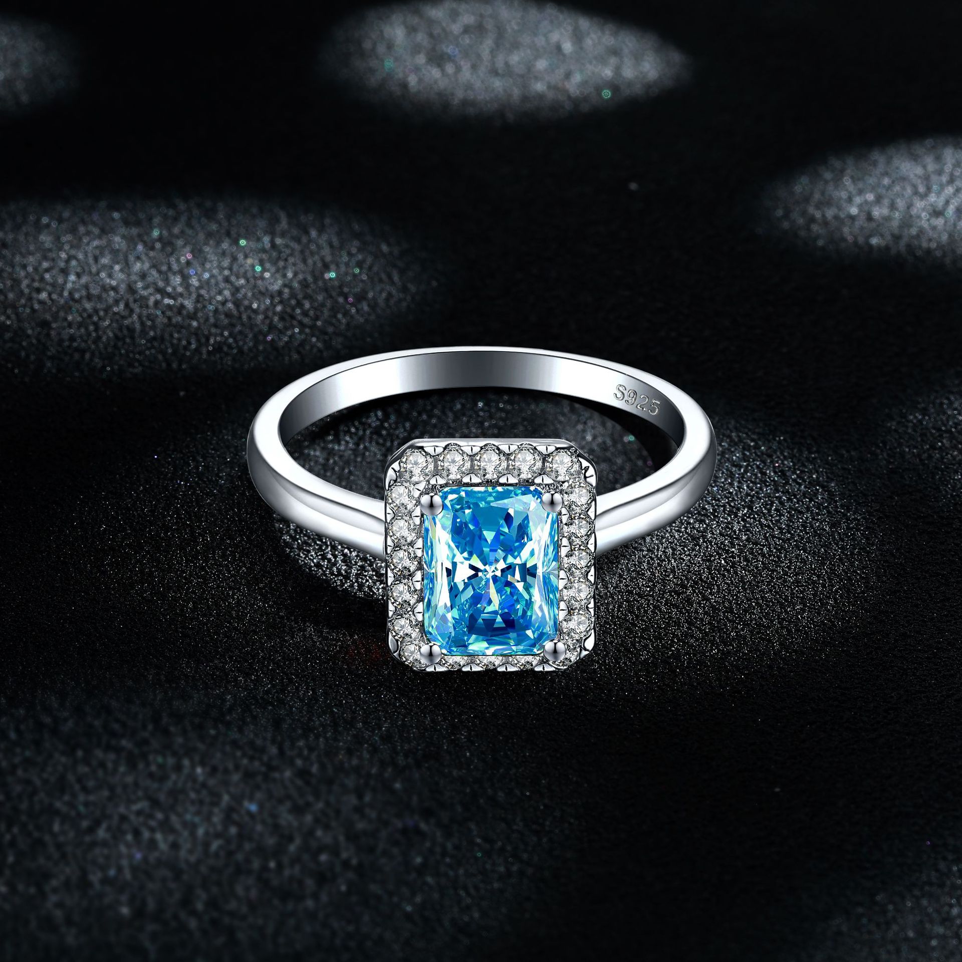 S925 sterling silver 2ct 6*8 high carbon diamond 8A zircon colored gemstone wedding ring