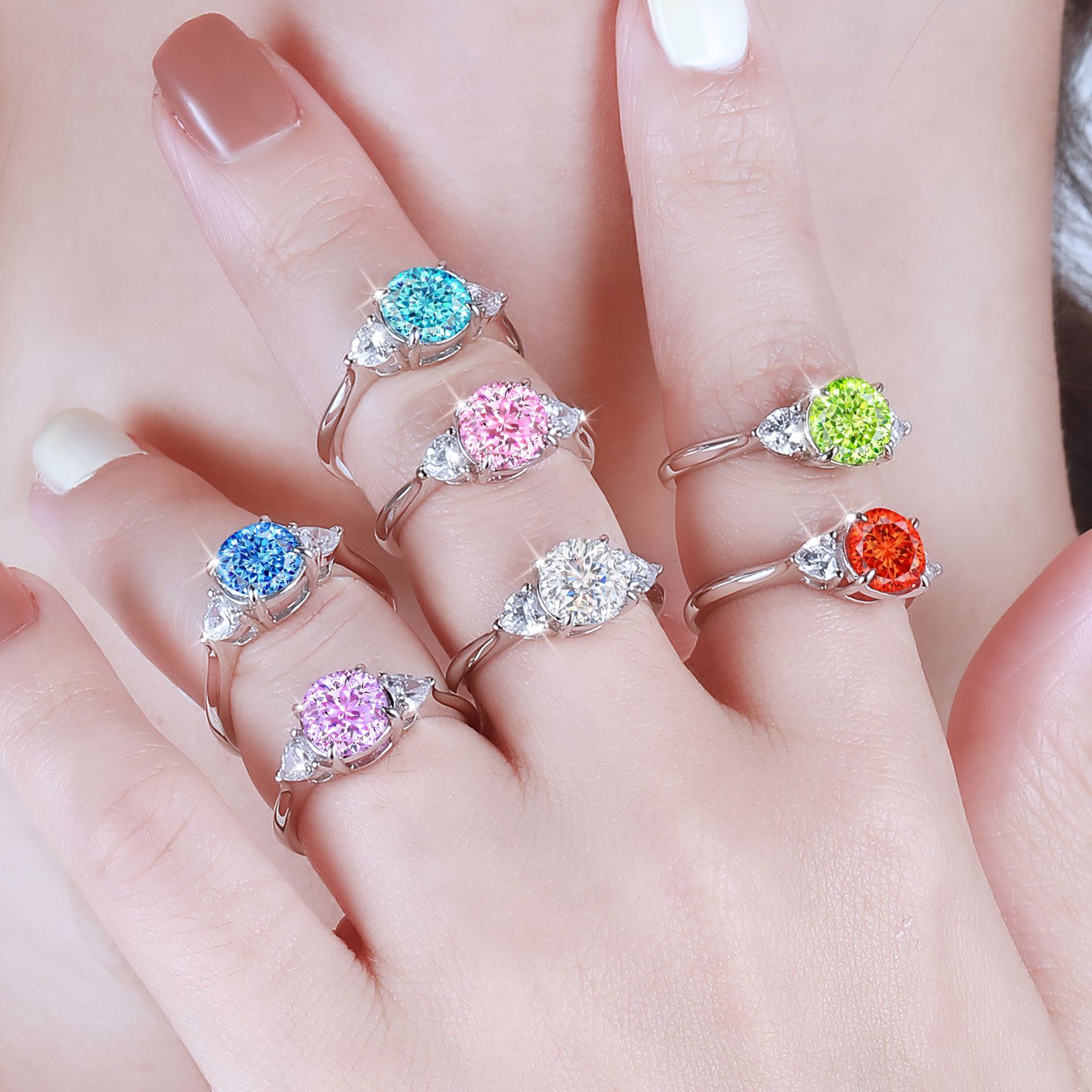 S925 sterling silver 2ct flame ice flower cut heart heart ring luxury luxury colored gemstone 8*8 high carbon diamond women’s ring