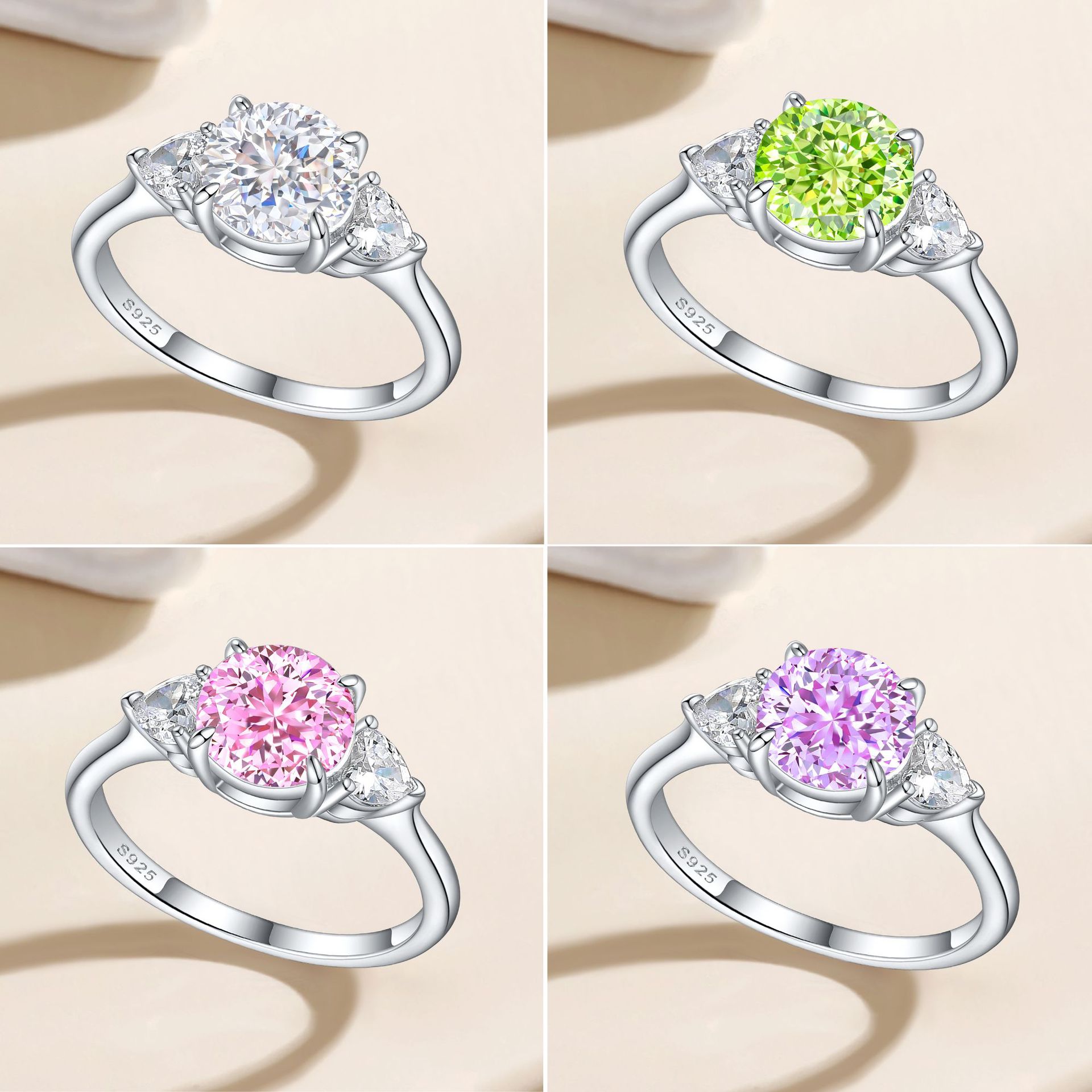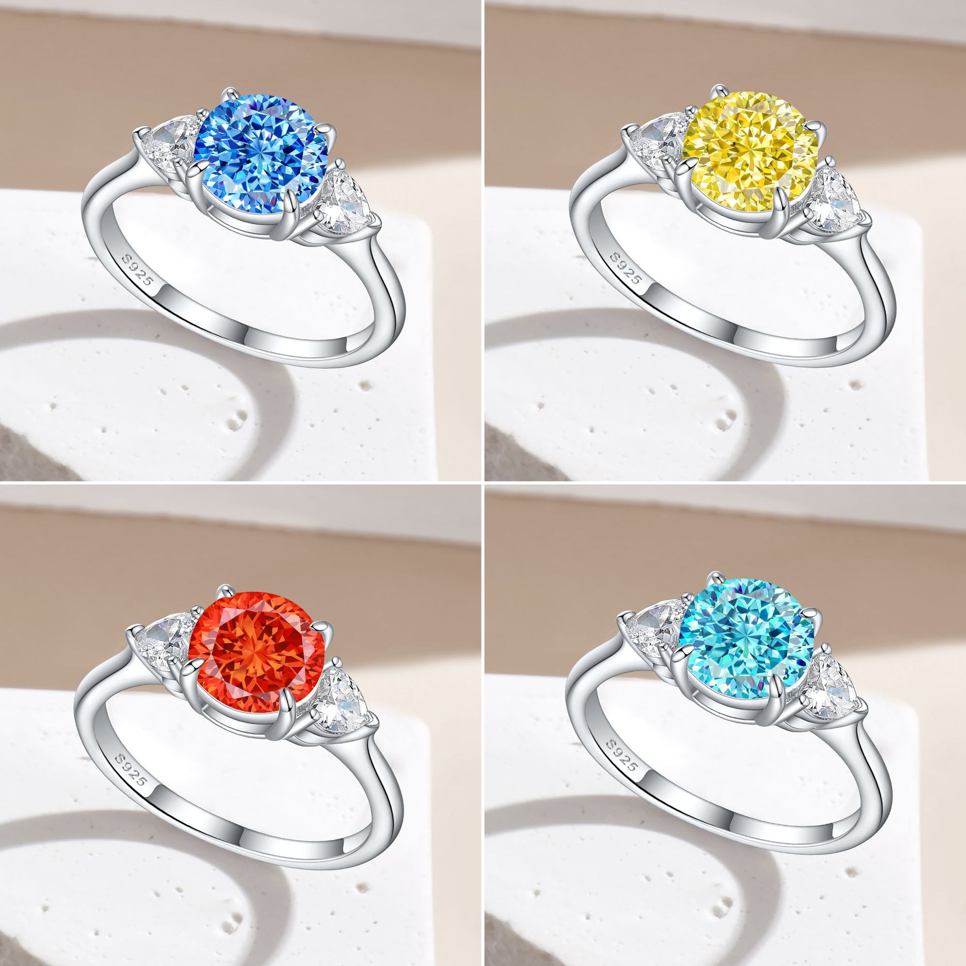 925 Sterling Silver 2ct Flame Ice Flower Cut Ring Women’s Senior European and American 8*8 Colored Gemstones High Carbon Diamond Ring