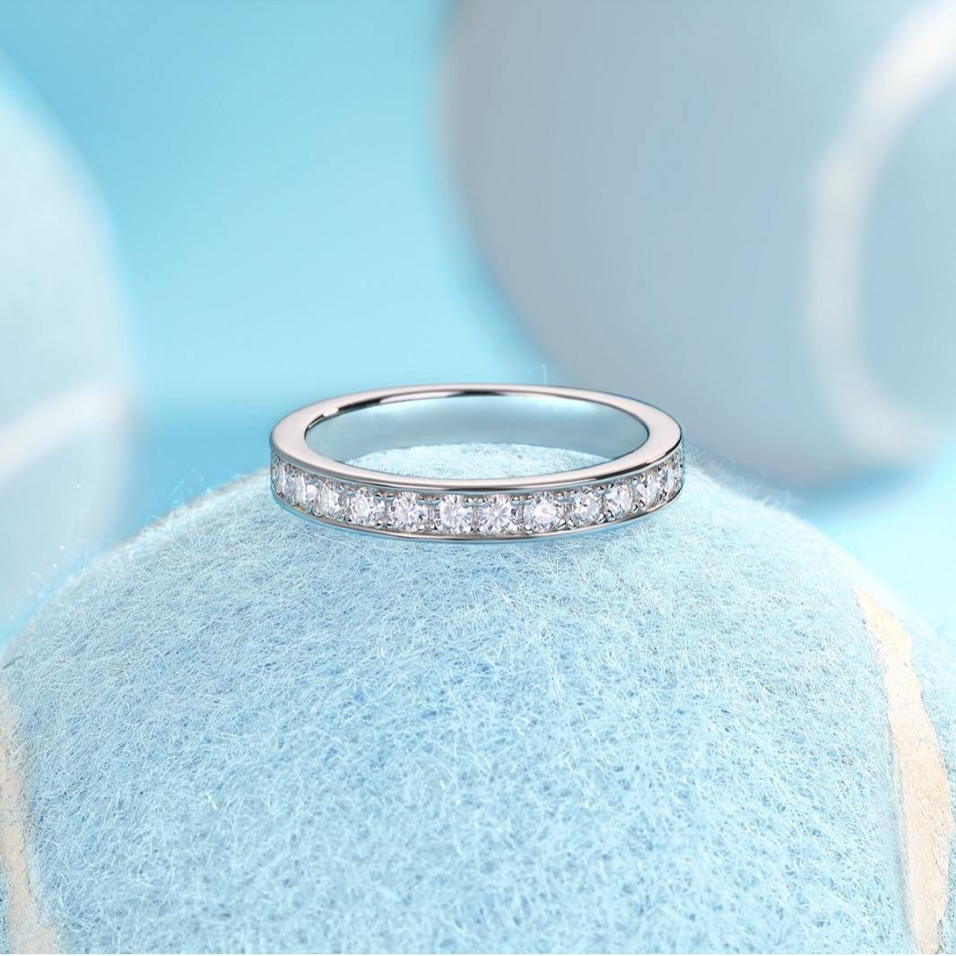 S925 Sterling Silver 2mm Full Moissanite Wedding Band Lab Diamond Engagement Eternal Ring with Cut Pearl for Women’s Jewelry No reviews yet