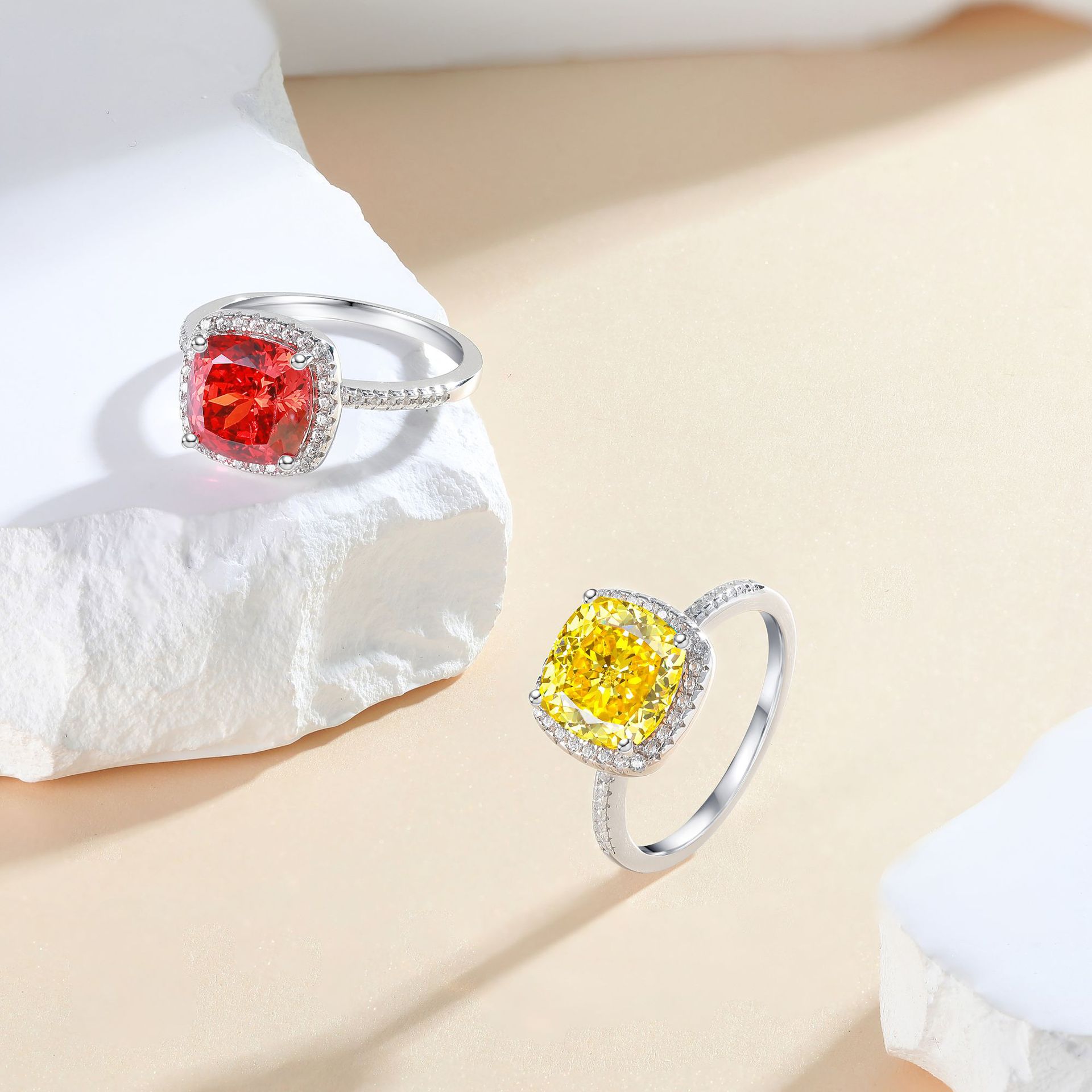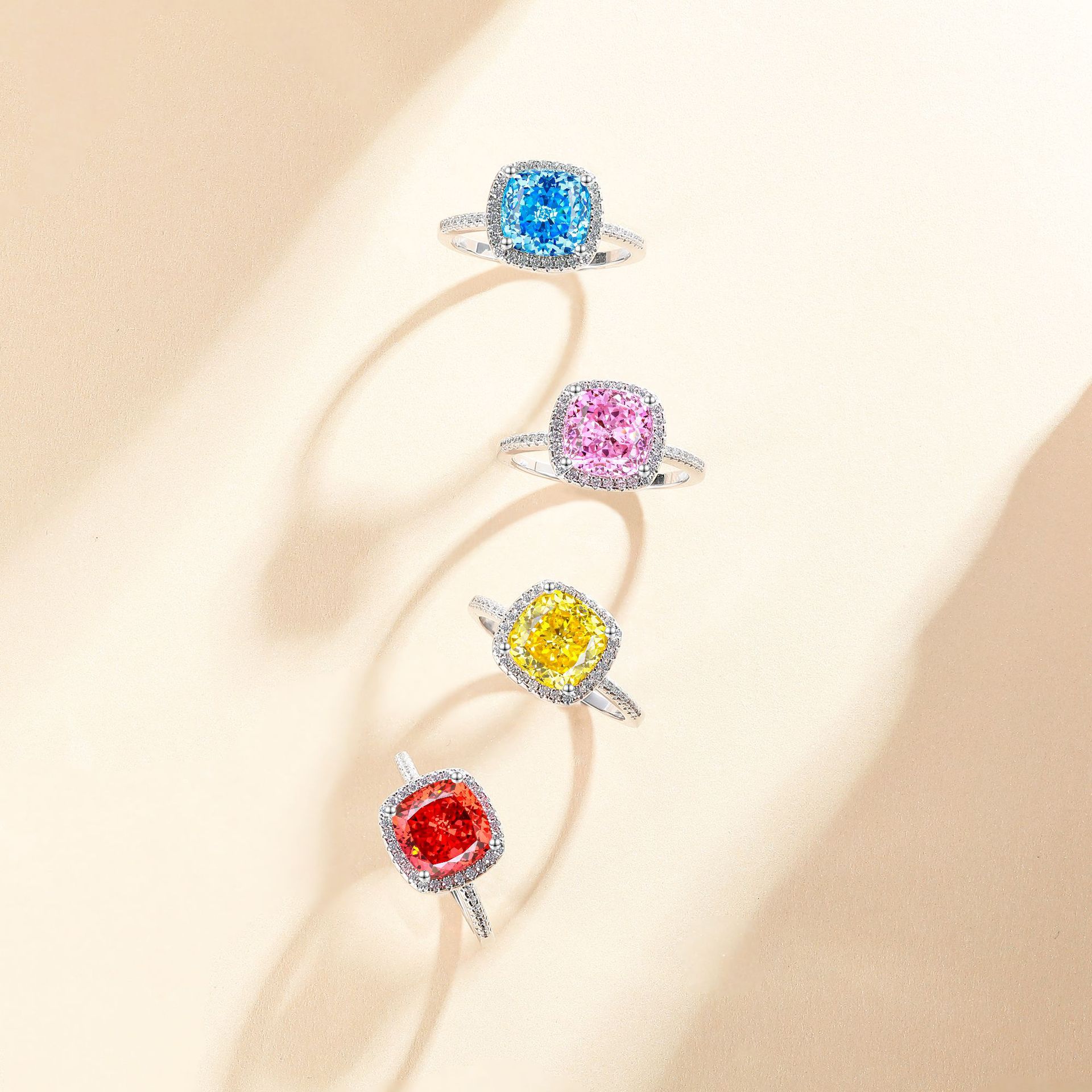 925 sterling silver 3.5ct colored gemstone ring women’s luxury European and American flame ice flower cut gemstone diamond ring