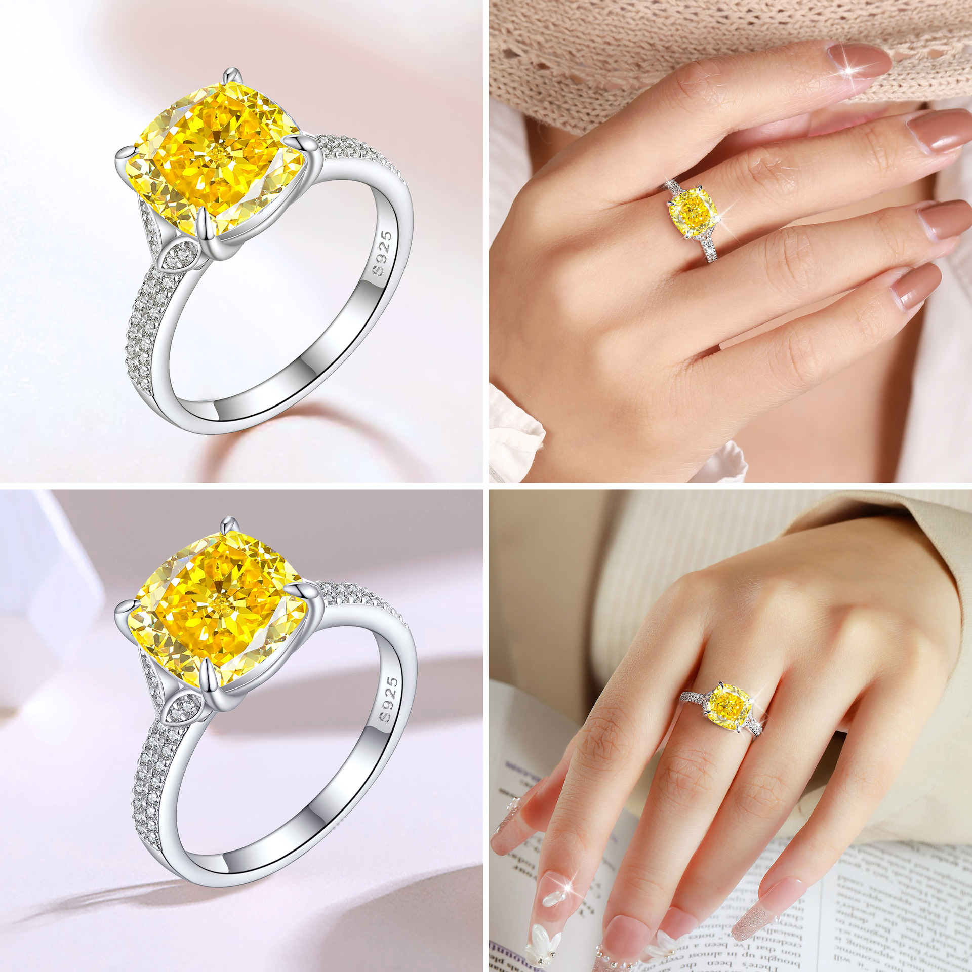 S925 sterling silver 2ct flame ice flower cut ring luxury sense simple 8*8 four prong 2 carat wedding ring high carbon diamond women’s ring