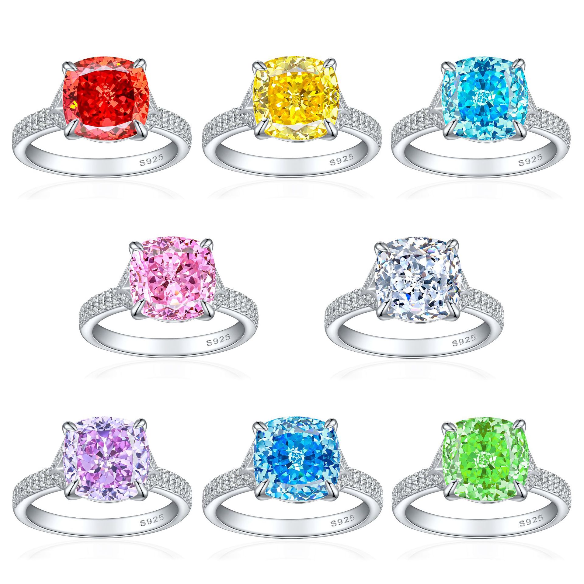 S925 Sterling Silver 5ct Flame Ice Flower Cut Ring Women’s Exaggerated 10*10 Colored Gemstone High Carbon Diamond Women’s Ring