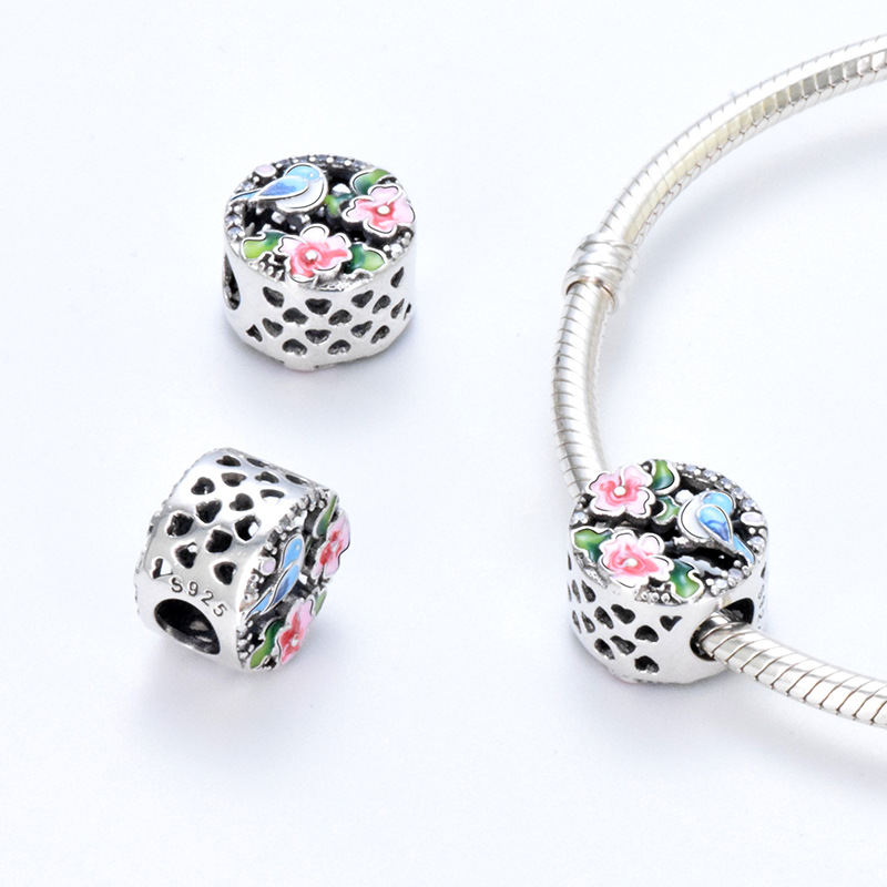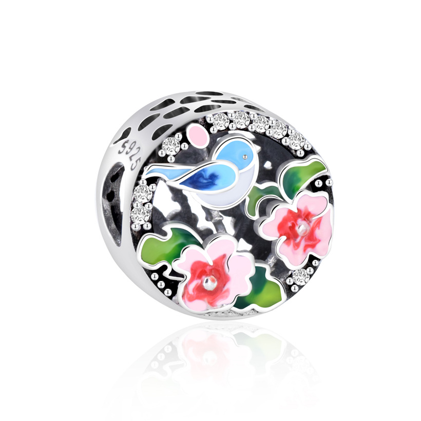 S925 sterling silver bead DIY pendant bird