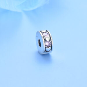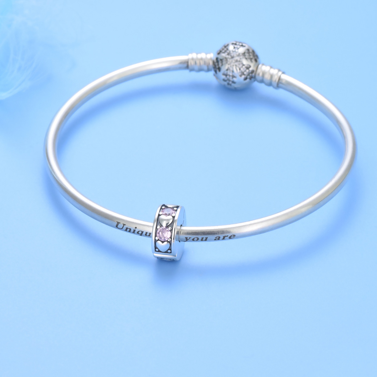 S925 Sterling Silver Pink Row Diamonds Ring Round Earrings Necklace 3-piece Jewelry set