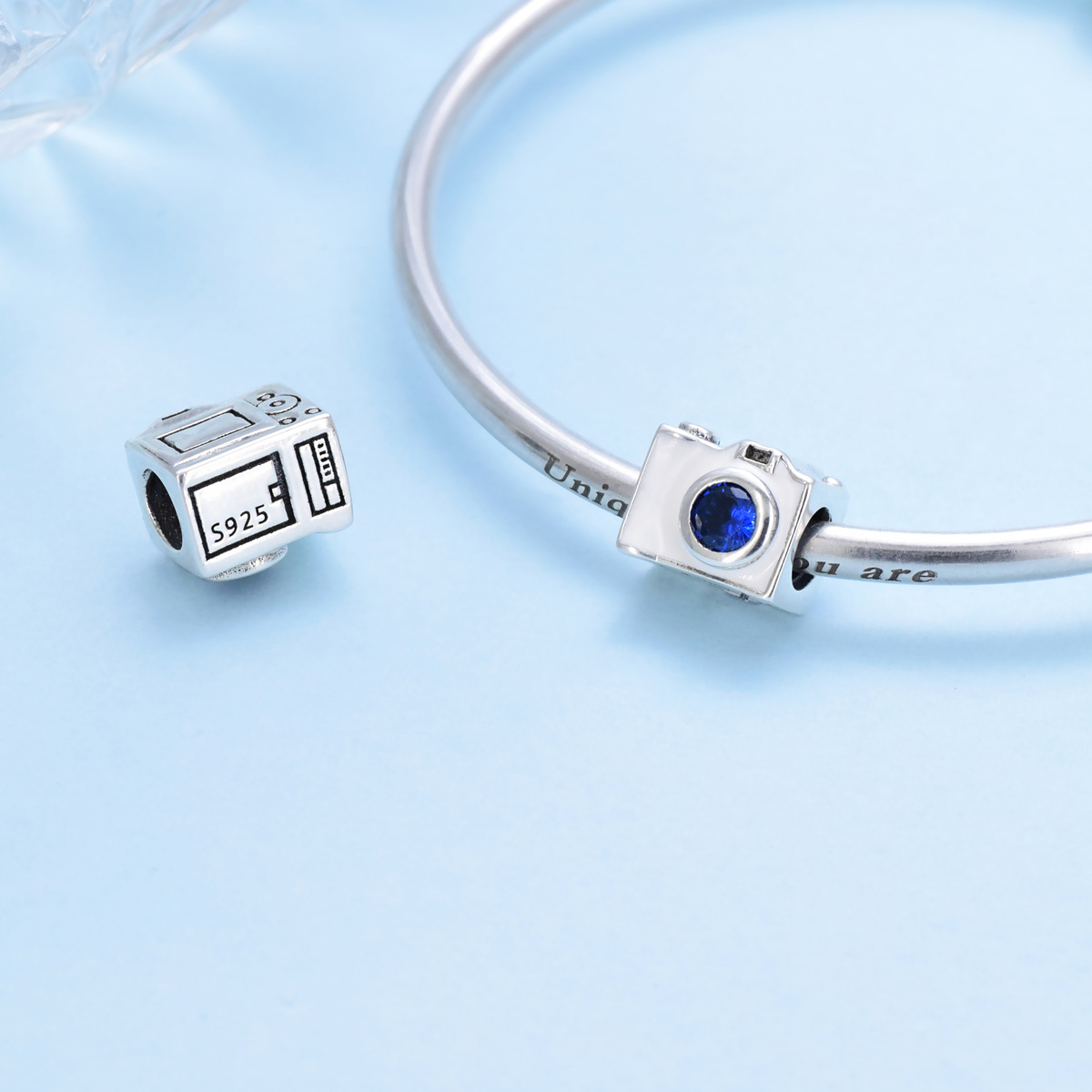 S925 sterling silver bead DIY pendant camera