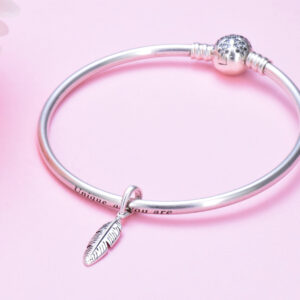 S925 sterling silver bead DIY pendant feather