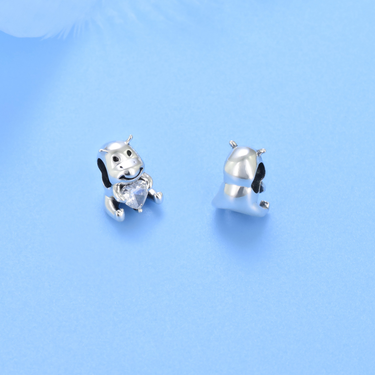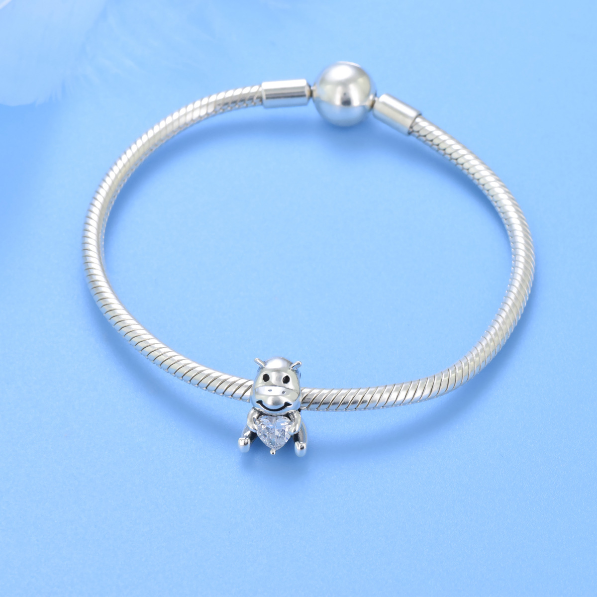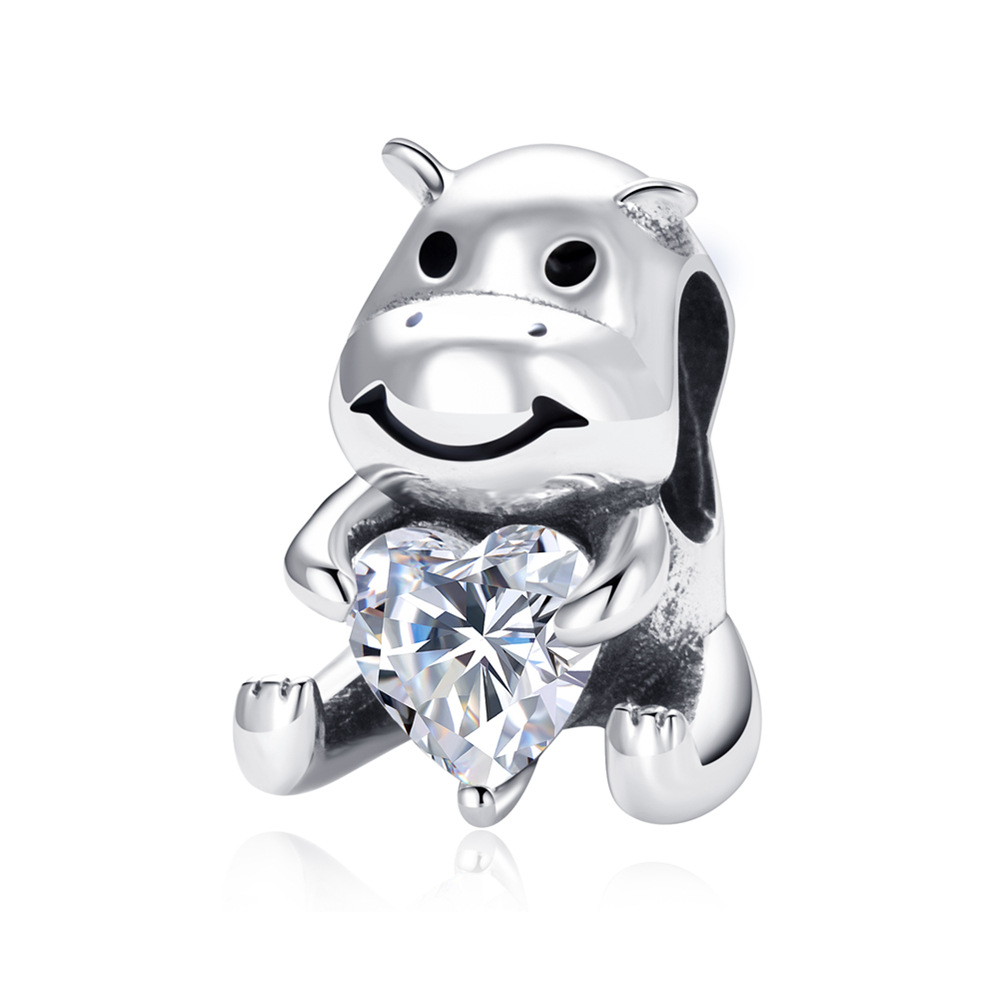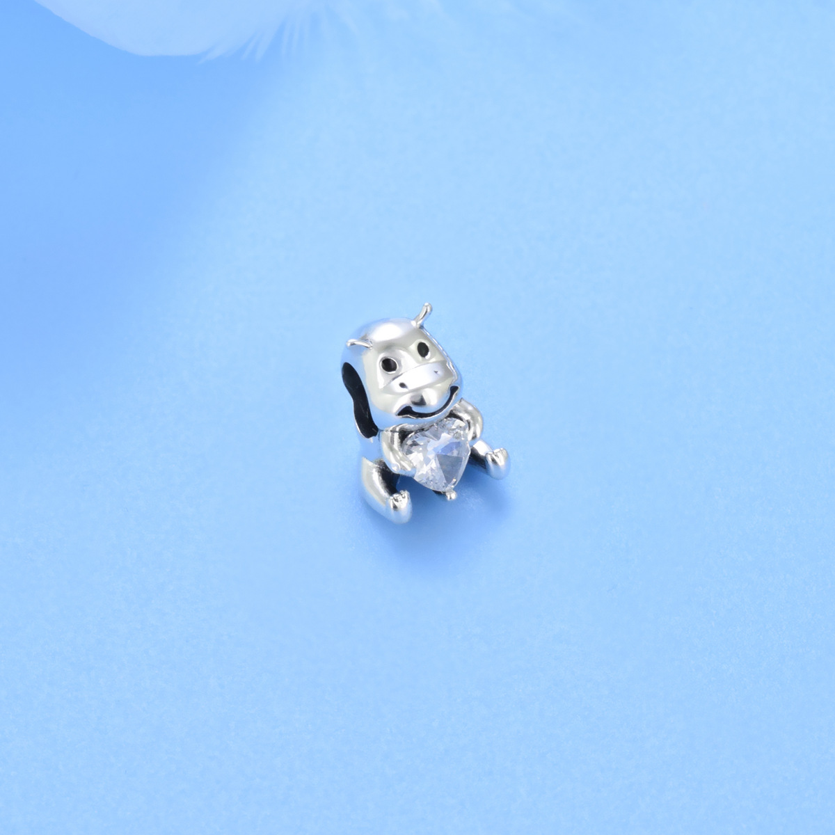 S925 sterling silver bead DIY pendant, Little Hippopotamus