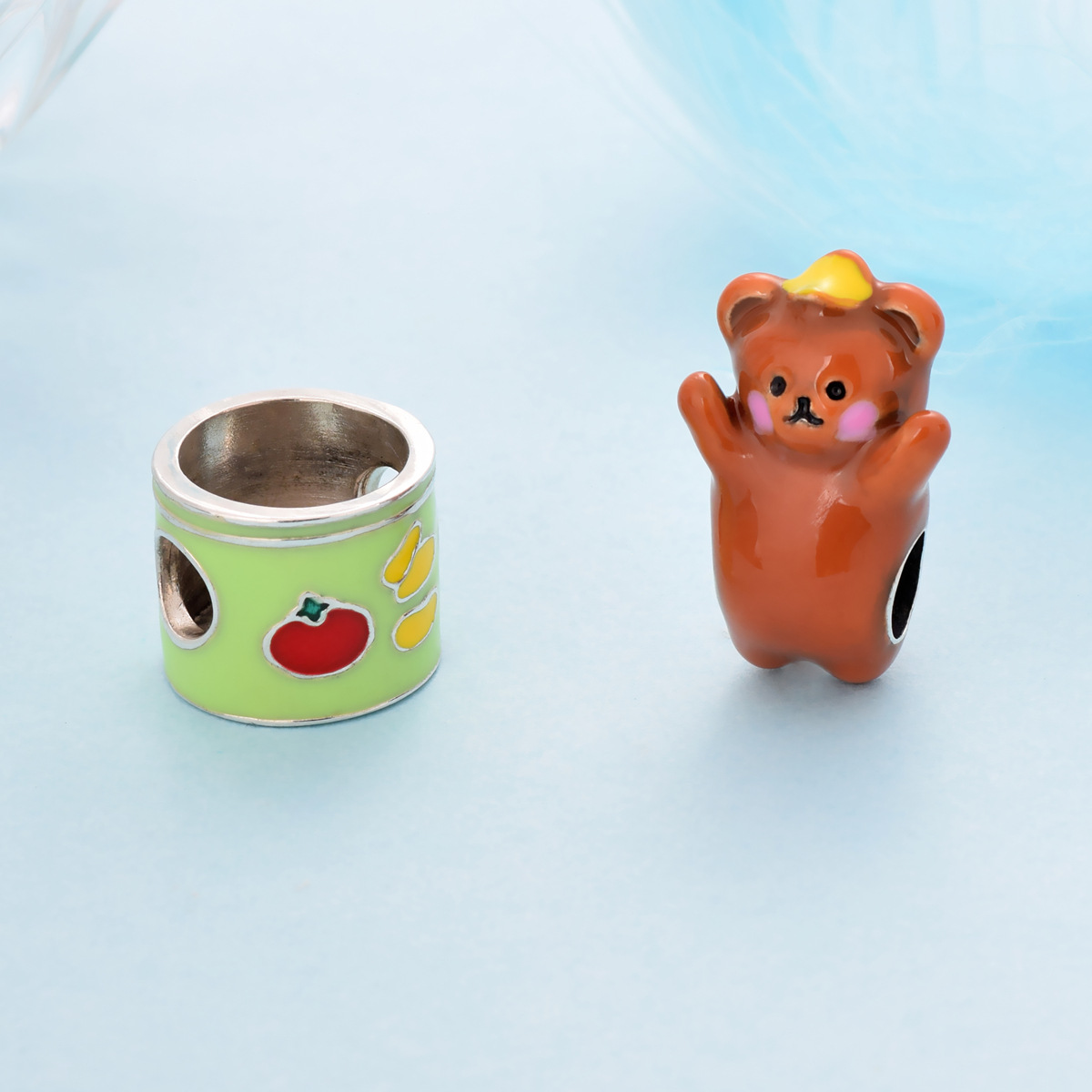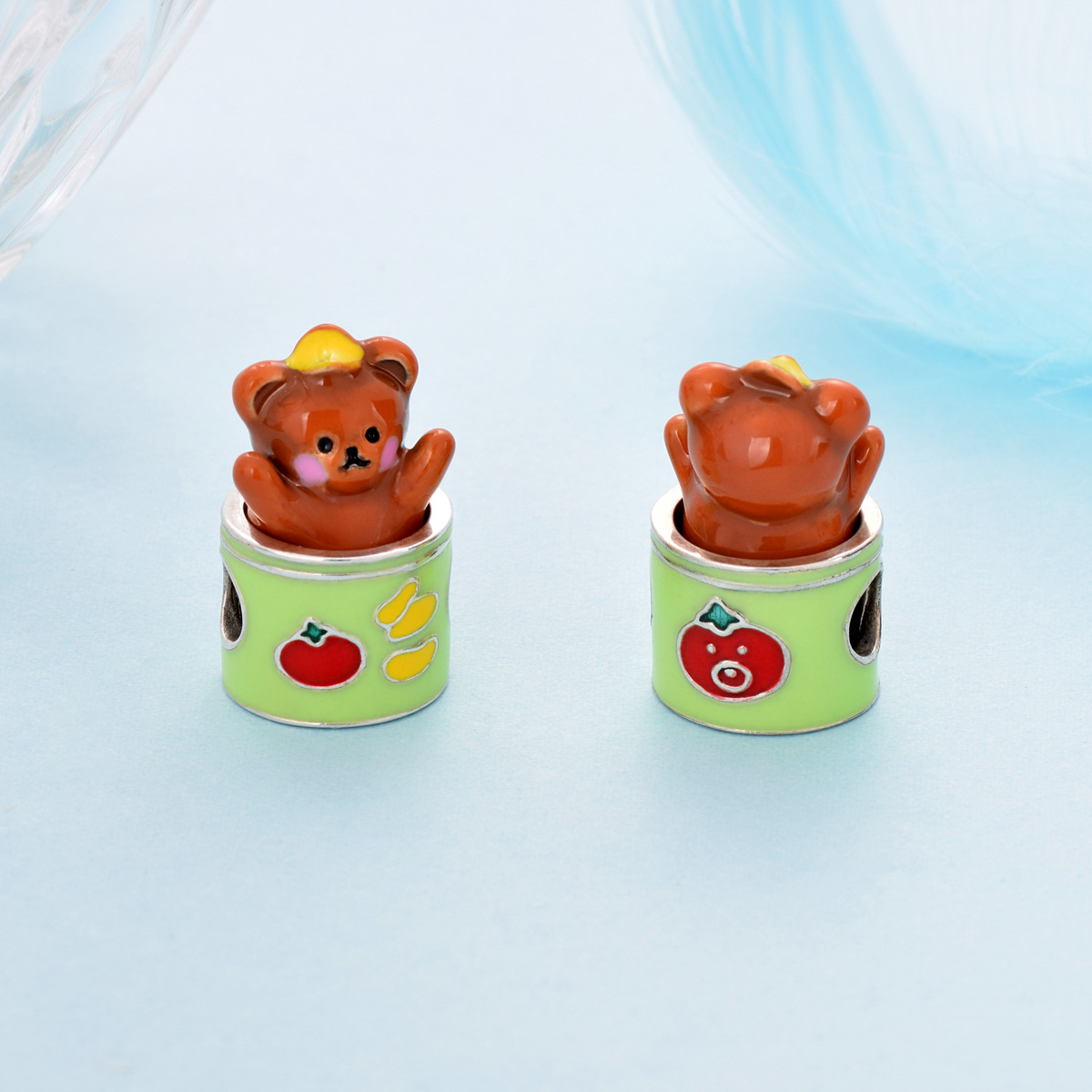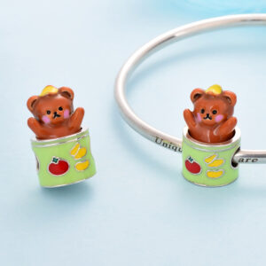 S925 sterling silver bead DIY pendant teddy bear