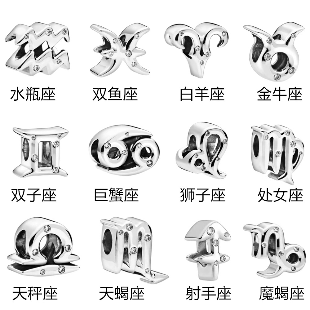 S925 sterling silver bead DIY pendant with 12 constellations
