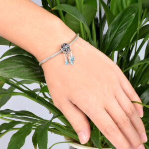 S925 sterling silver bead DIY pendant with blue feathers