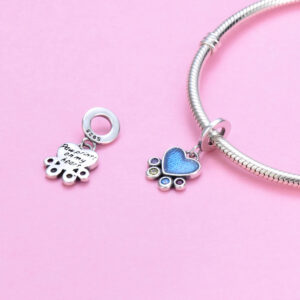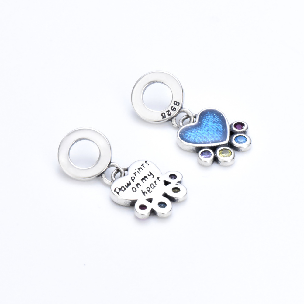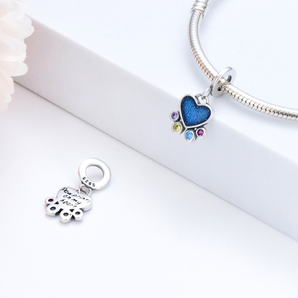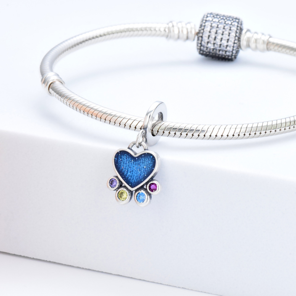 S925 sterling silver bead DIY pendant with blue heart shape