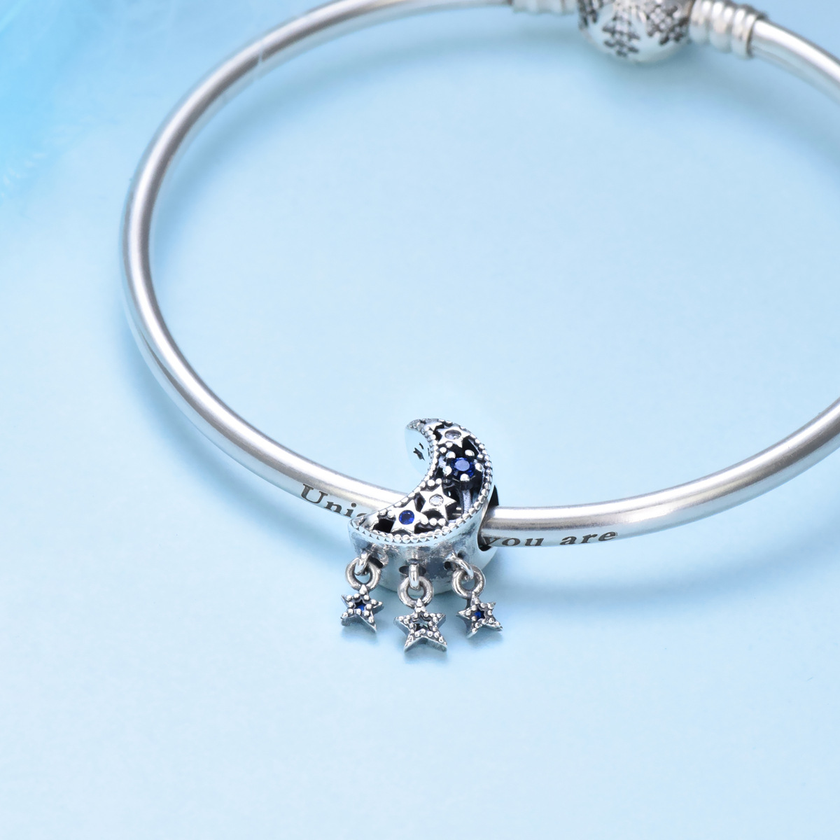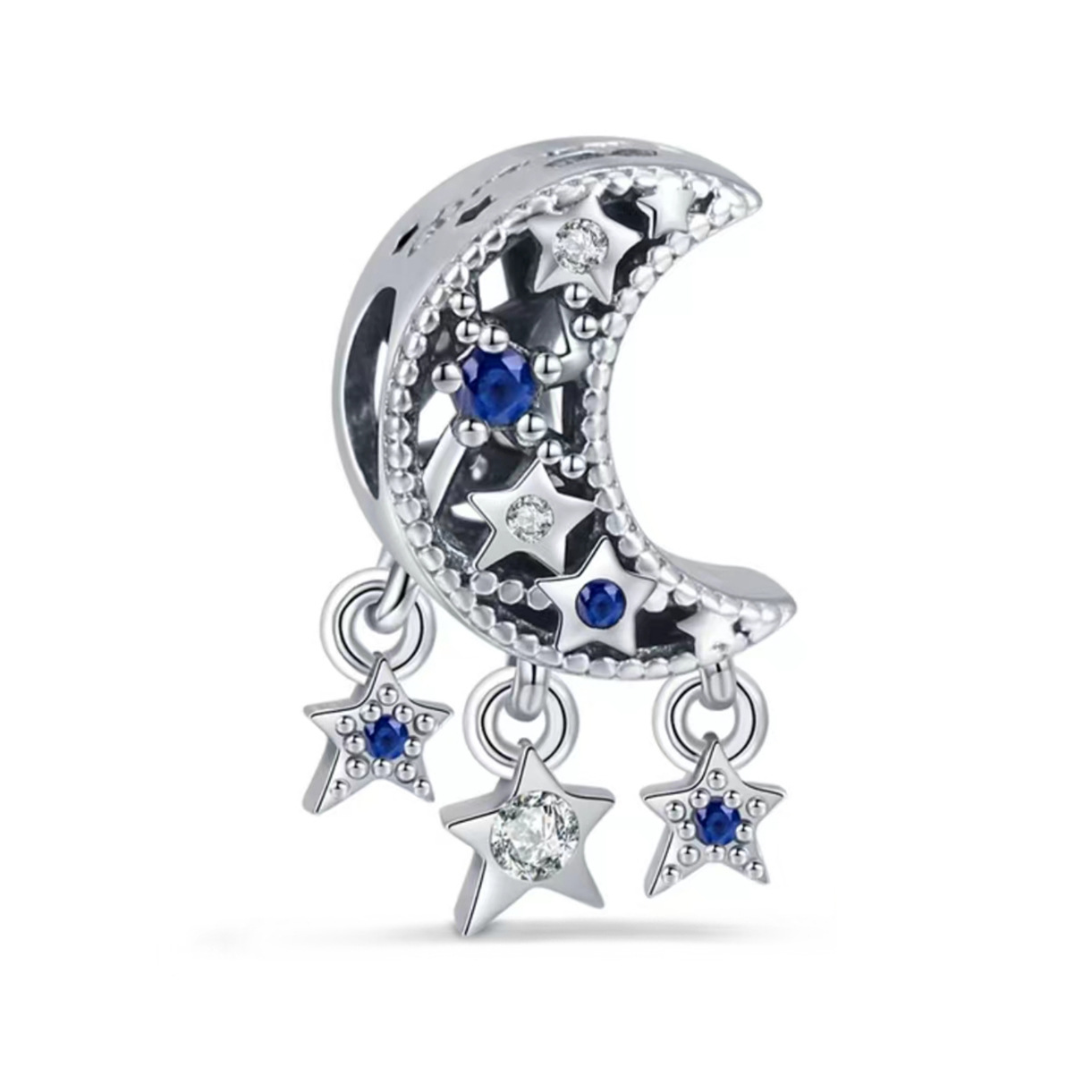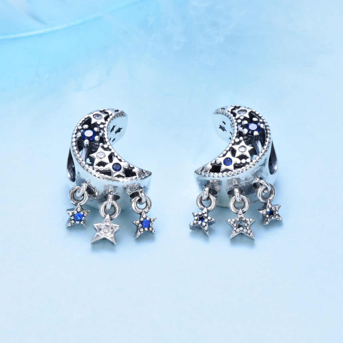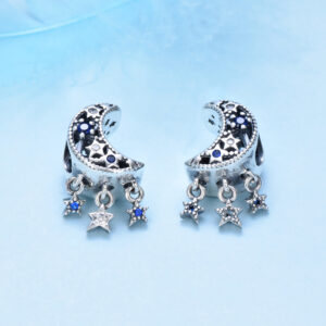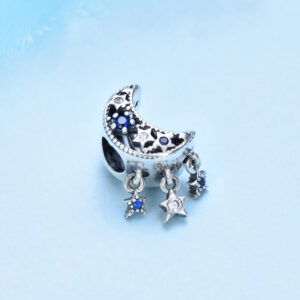 S925 sterling silver bead DIY pendant with stars and moon