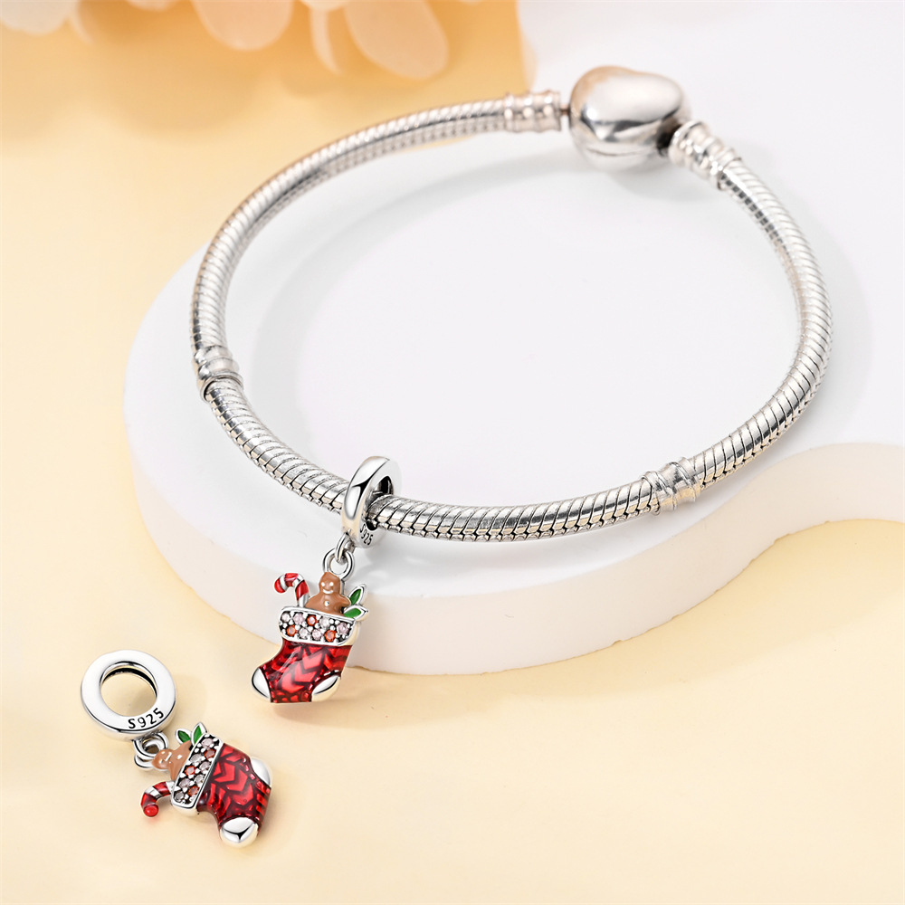 S925 sterling silver beaded Christmas stocking bracelet accessories
