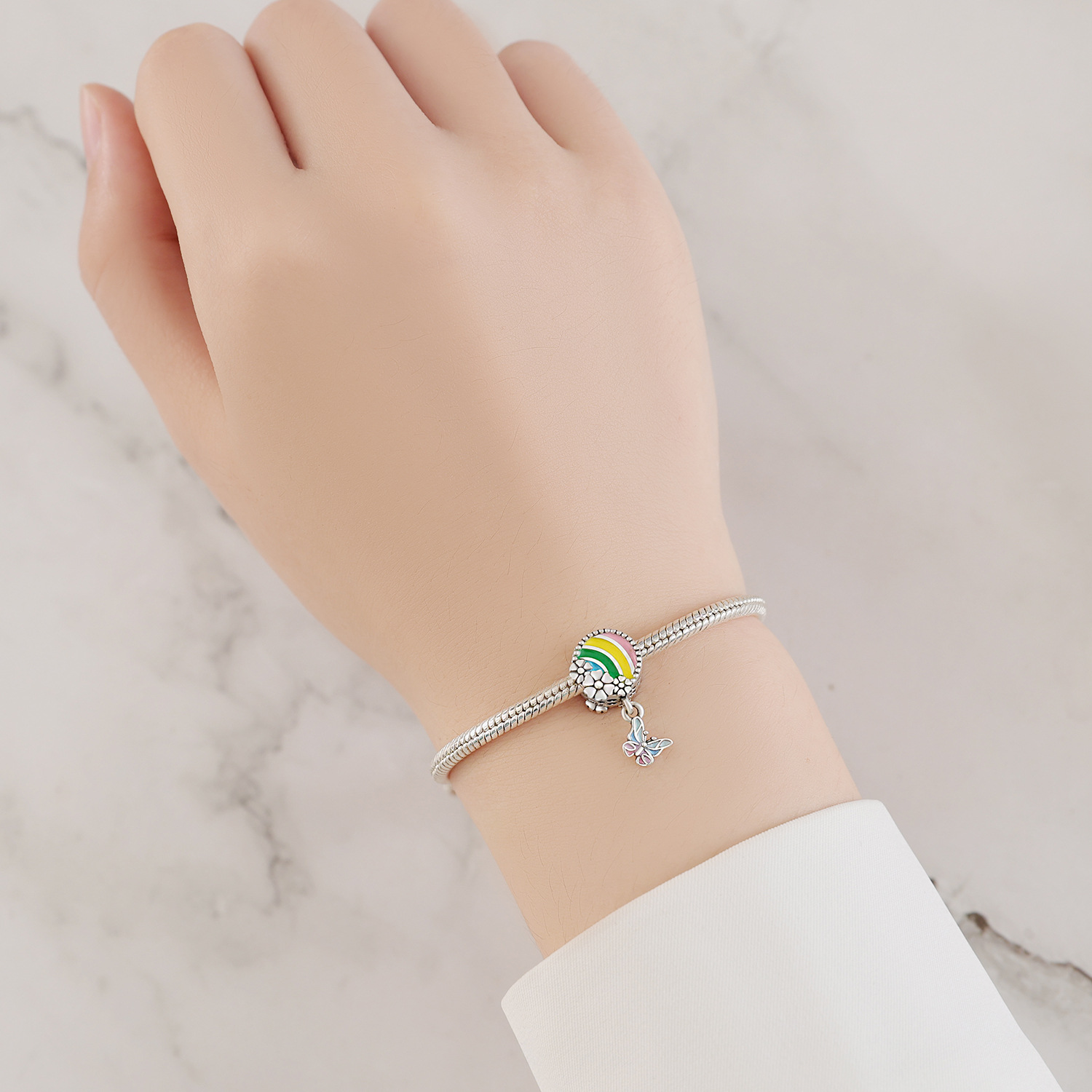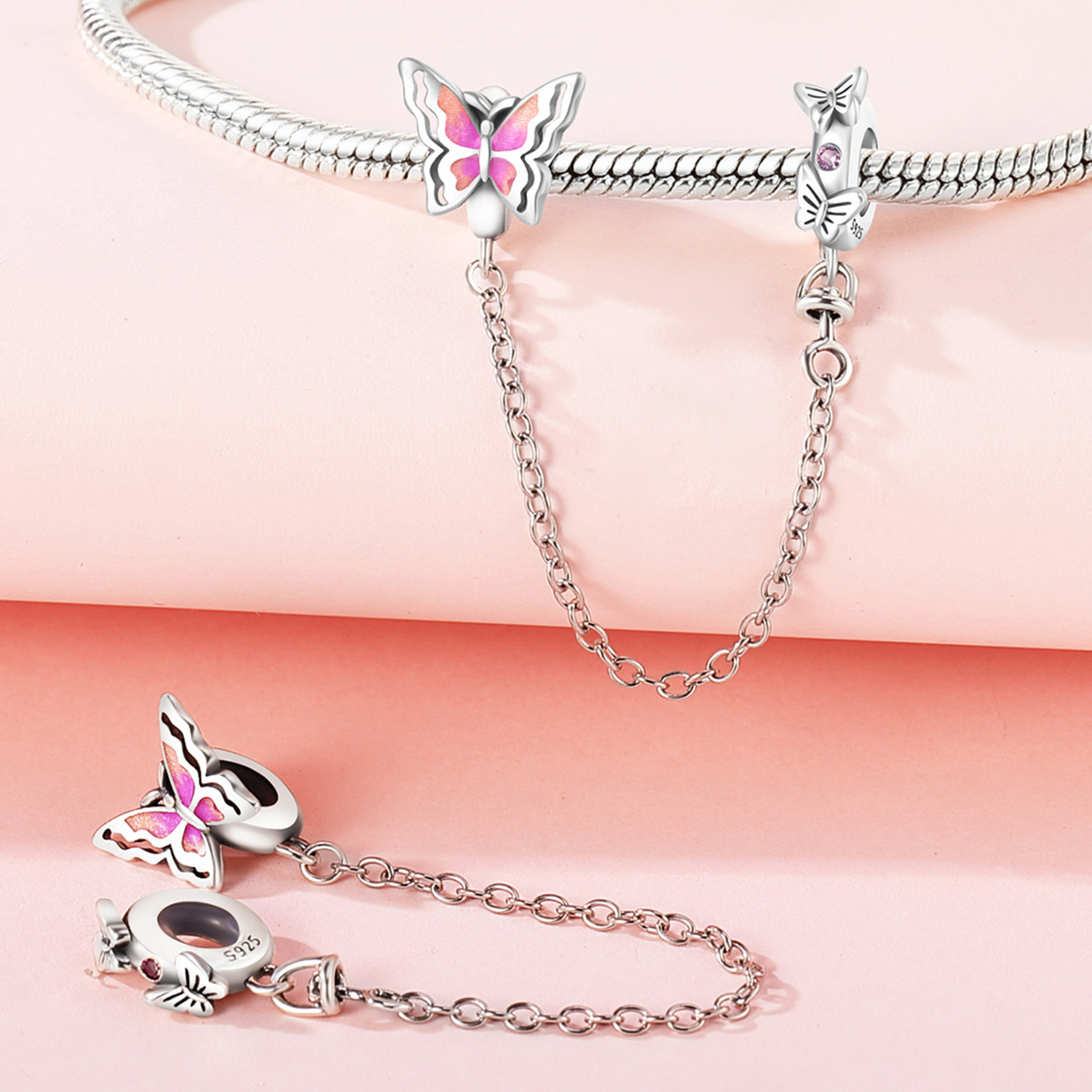S925 Sterling Silver Beaded DIY Butterfly Bracelet Accessories