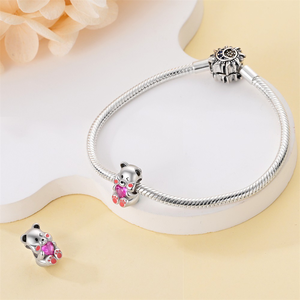 S925 Sterling Silver Beaded DIY Cartoon Bear Bracelet Accessories
