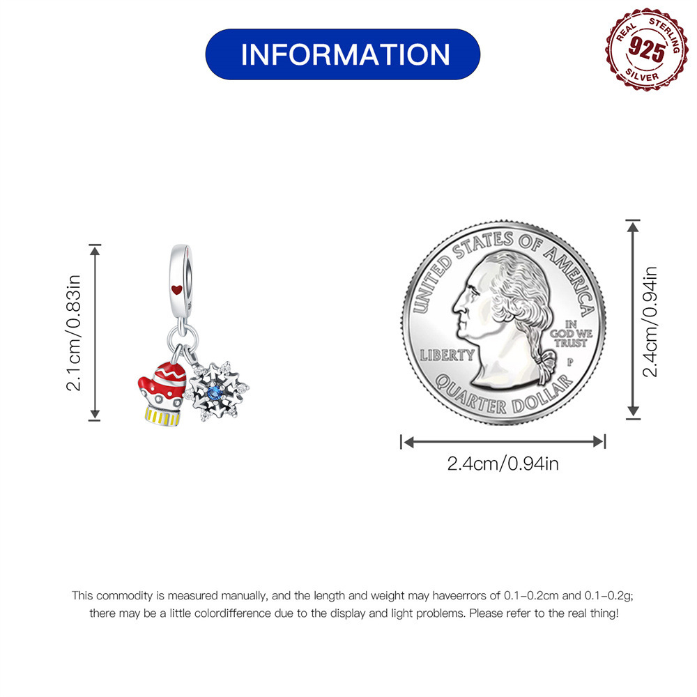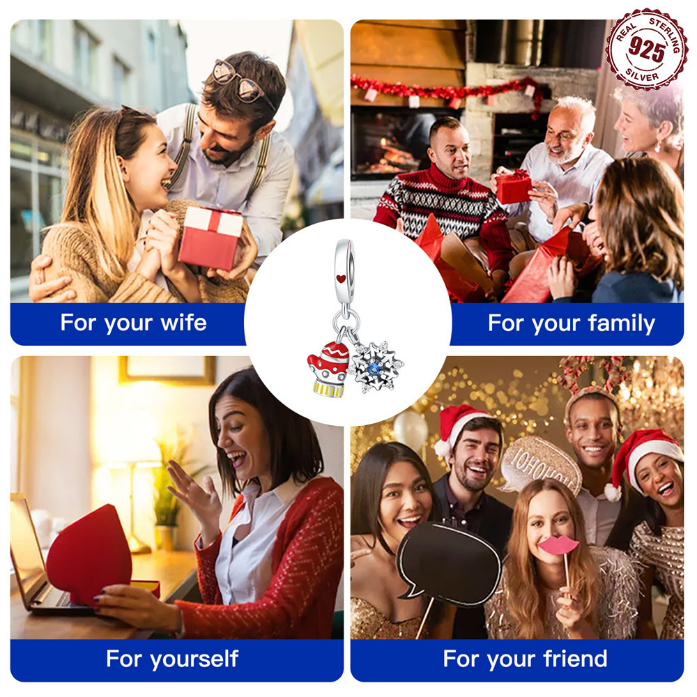 S925 Sterling Silver Beaded DIY Christmas Gloves Snowflake Bracelet Accessories quantity