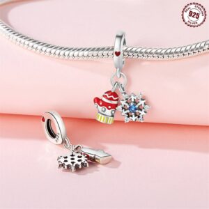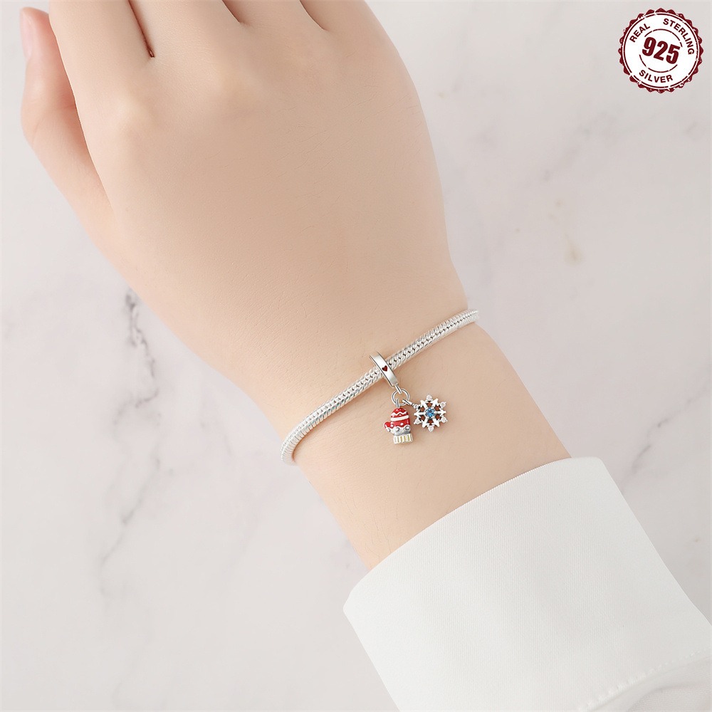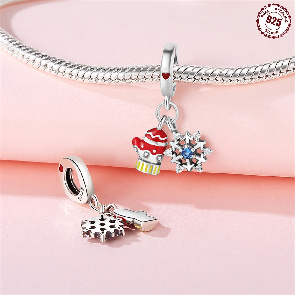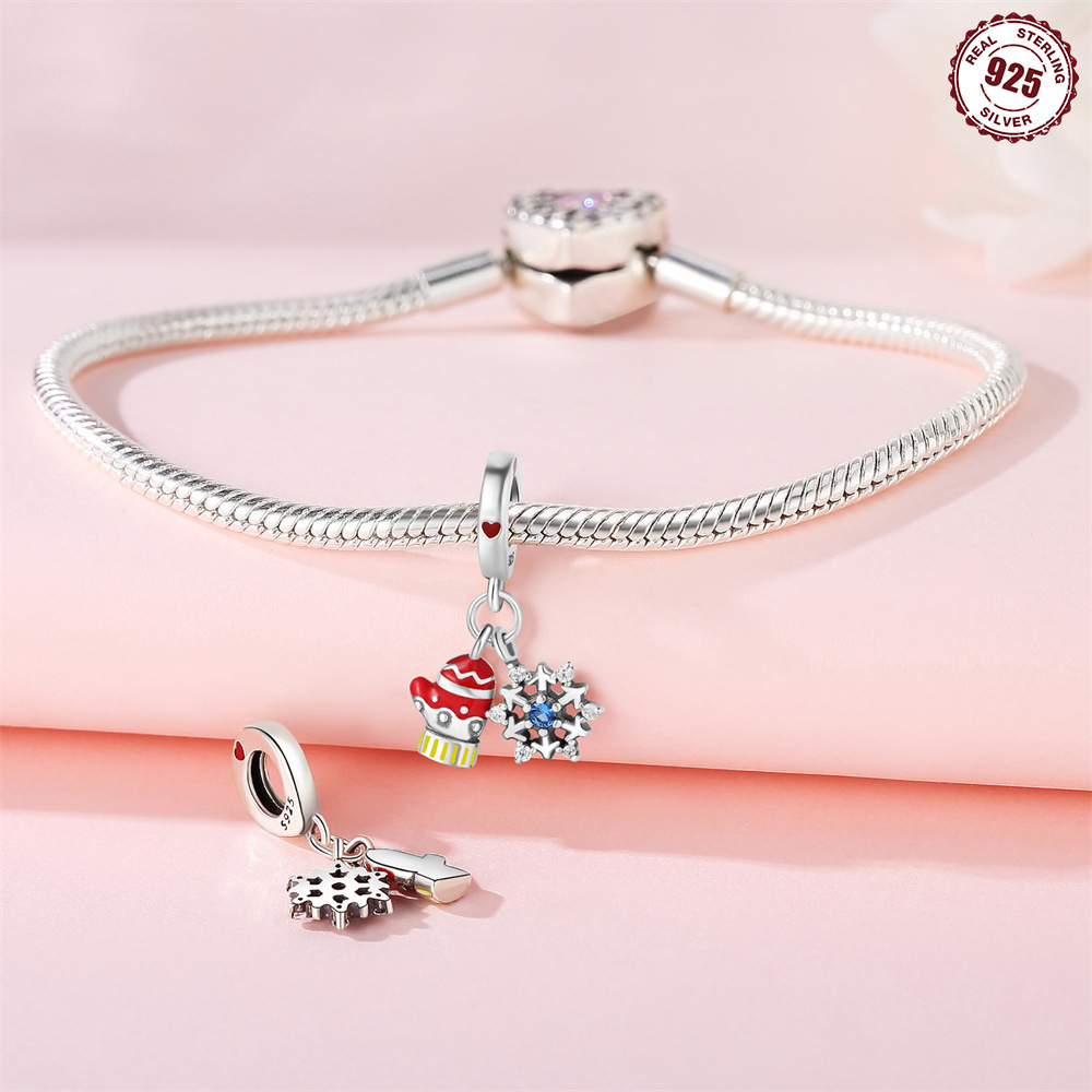 S925 Sterling Silver Beaded DIY Christmas Gloves Snowflake Bracelet Accessories