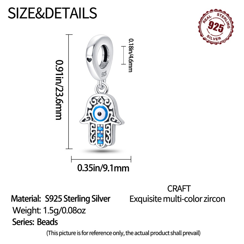 S925 Sterling Silver Beaded DIY Fatima Hand Bracelet Accessories