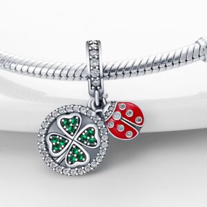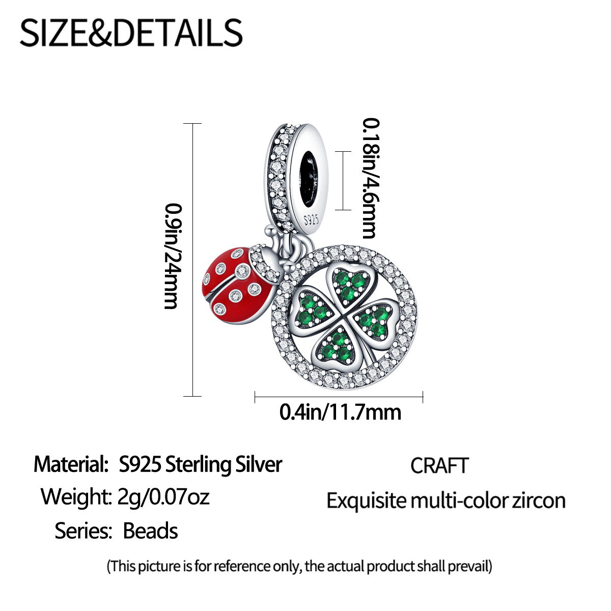 S925 Sterling Silver Beaded DIY Green Leaf Ladybug Bracelet Accessories quantity