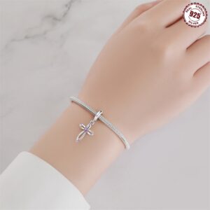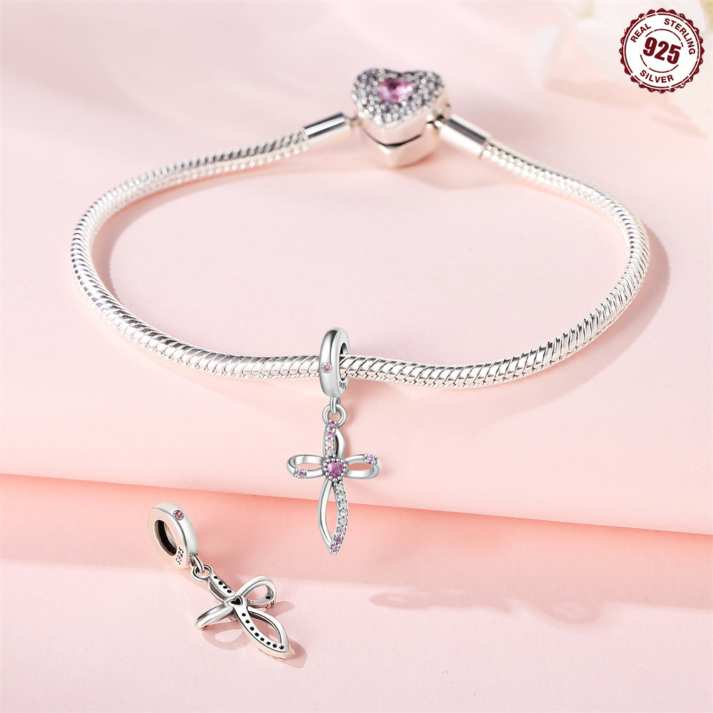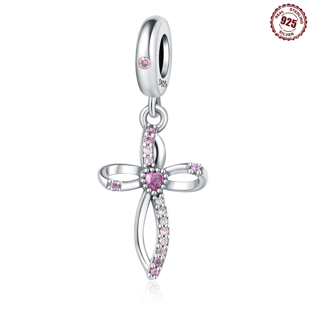 S925 sterling silver beaded DIY heart cross bracelet accessories