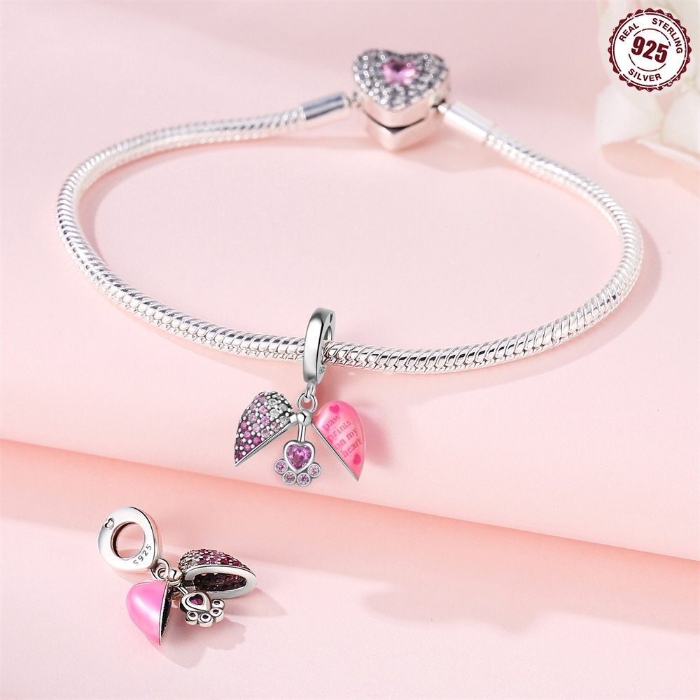 S925 sterling silver beaded DIY heart shaped paw print bracelet accessories