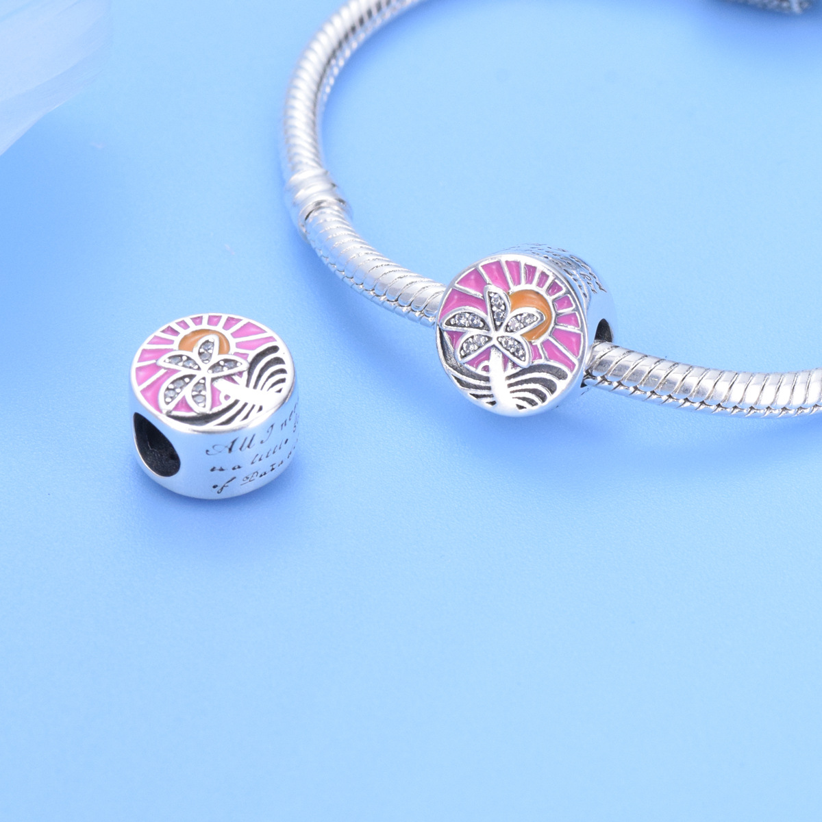 S925 Sterling Silver Beaded DIY Pendant Beach Coconut Tree