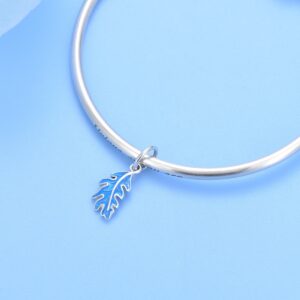 S925 Sterling Silver Beaded DIY Pendant Blue Feathers
