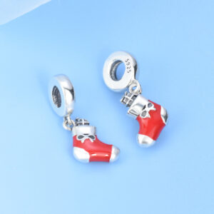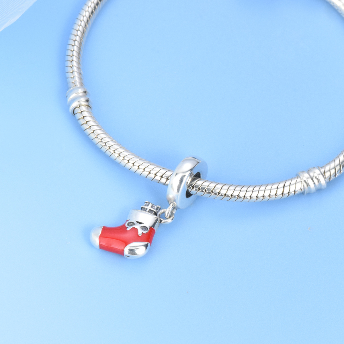S925 Sterling Silver Beaded DIY Pendant Christmas Socks