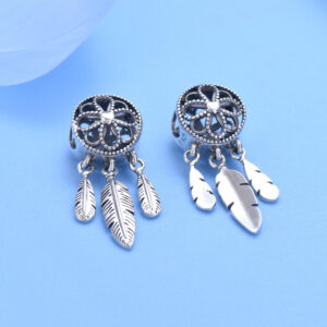 S925 Sterling Silver Beaded DIY Pendant Feathers