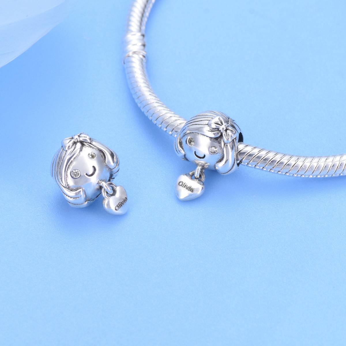 S925 sterling silver beaded DIY pendant for little girl